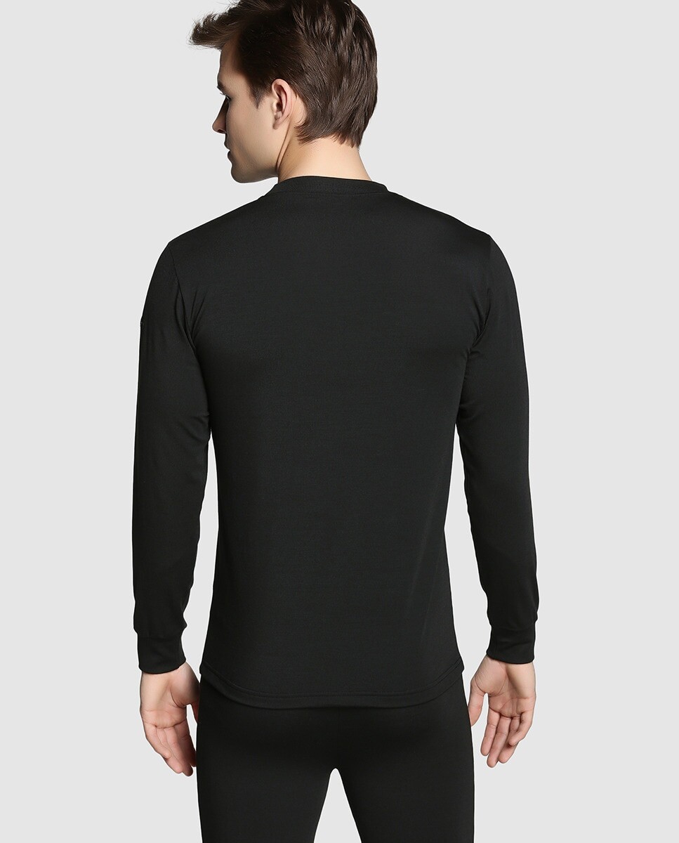Черная футболка с круглым вырезом. длинный рукав. Термо от Impetus защищает от холода, сохраняя при этом естественную температуру тела. перемещение влаги наружу. Больше эластичности, больше адаптируемости. мобильность для тела. Из соображений гигиены этот товар не подлежит обмену или возврату.