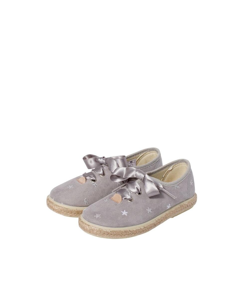 Самые милые тапочки для вашего малыша – в Писамонасе! Эти кроссовки в стиле Блюхер с вышивкой звезд и атласным кружевом станут вашими фаворитами. Они изготовлены из текстиля, имеют резиновую подошву с джутовой поверхностью и атласными шнурками, придающими им элегантный вид. Вот почему они идеально подходят как для весенних вечеров в парке, так и для более особых случаев. В размерах 22–30 вы можете приобрести эти кроссовки с вышивкой и атласными шнурками серого или розового цвета, чтобы их можно было очень просто комбинировать.