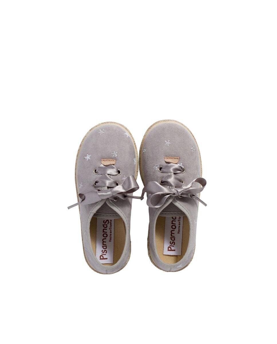 Кроссовки из парусины для девочки с атласными шнурками Pisamonas, серый