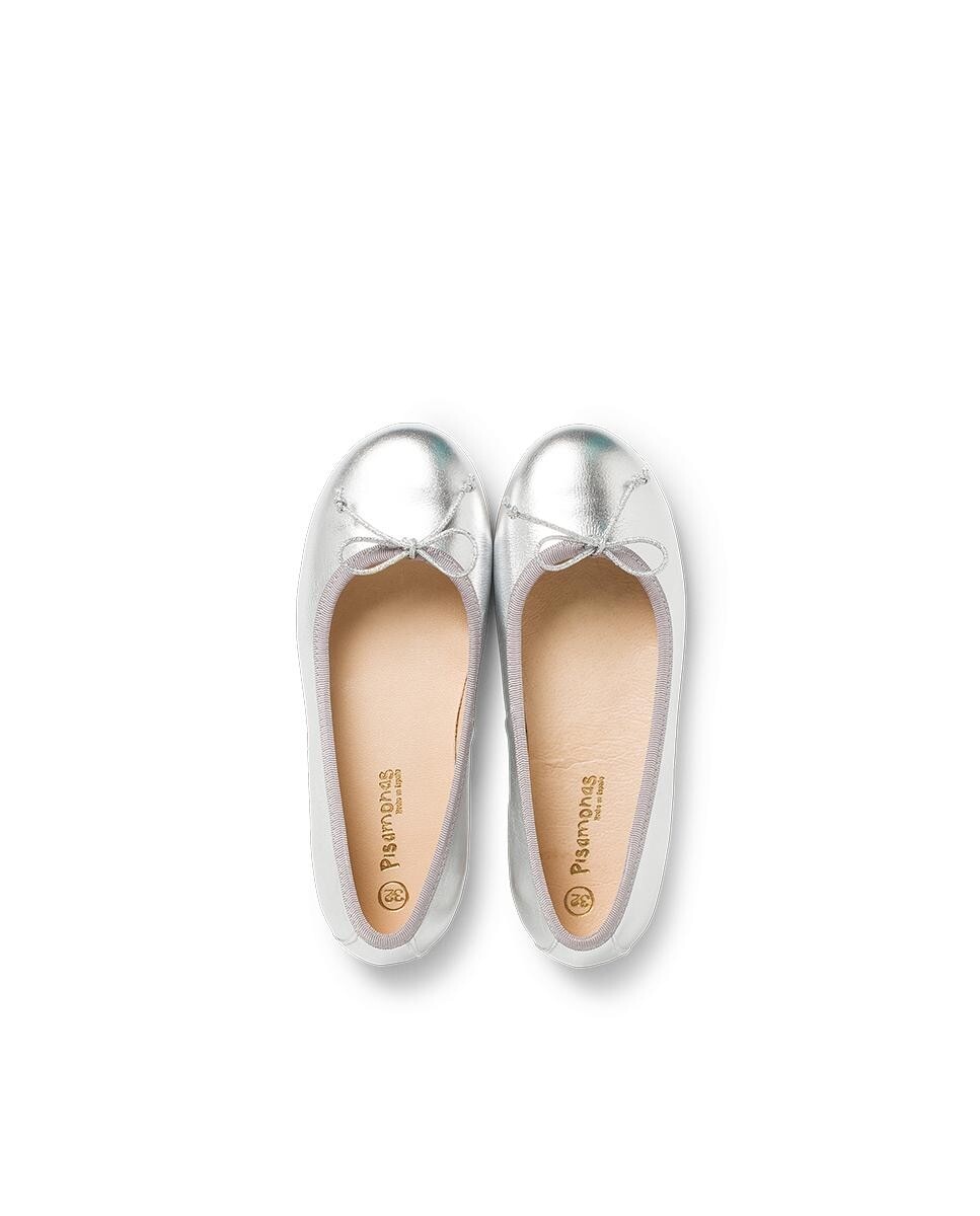Кожаные балетки для девочек в классическом стиле Pisamonas, серебро
