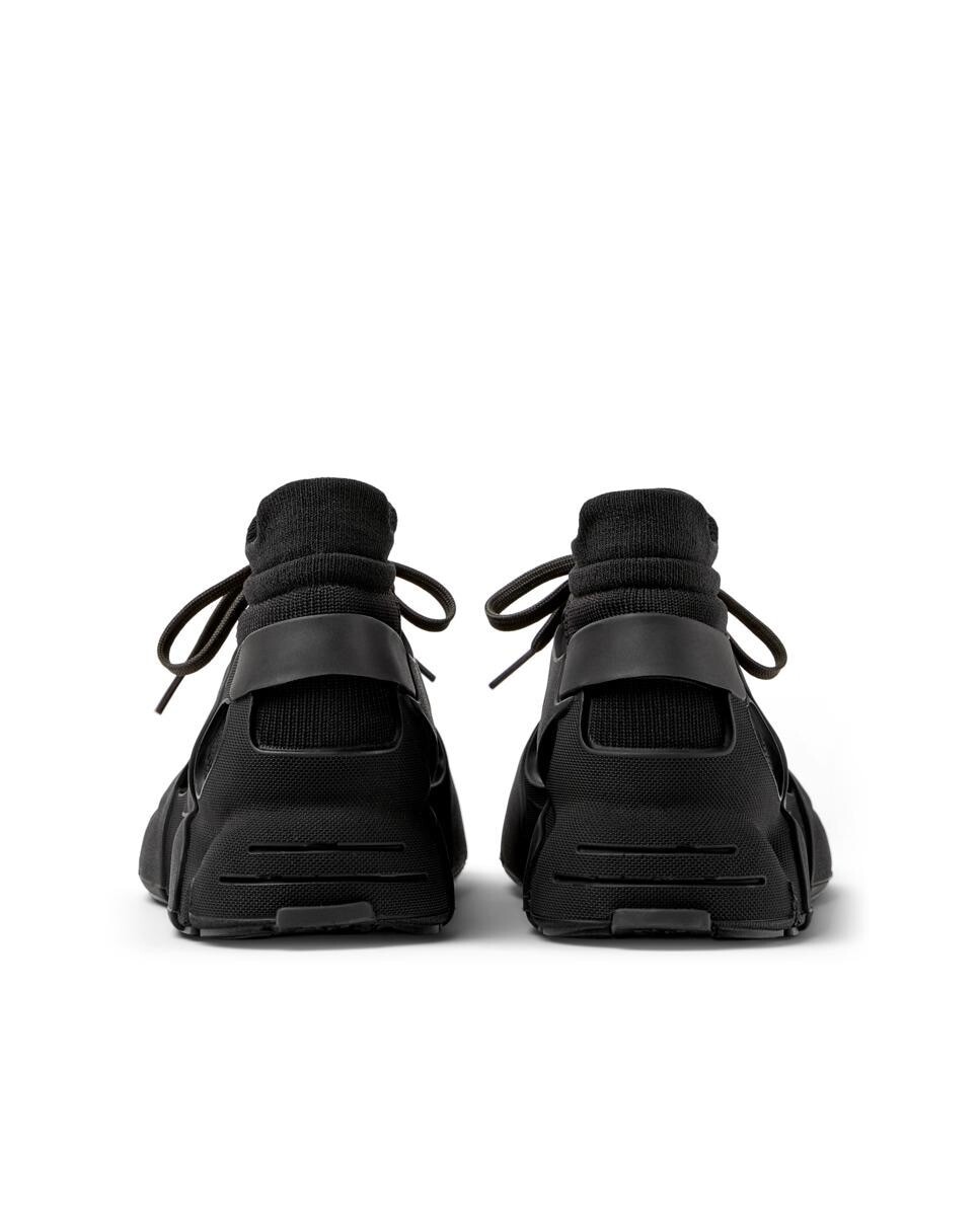 Черные кроссовки из сетчатой ​​ткани с водоотталкивающим трикотажным внутренним носком из ПЭТ, снаружи - из ТПУ с прямым впрыском. Подошвы из переработанного полиуретана. Полностью пригодна для вторичной переработки.