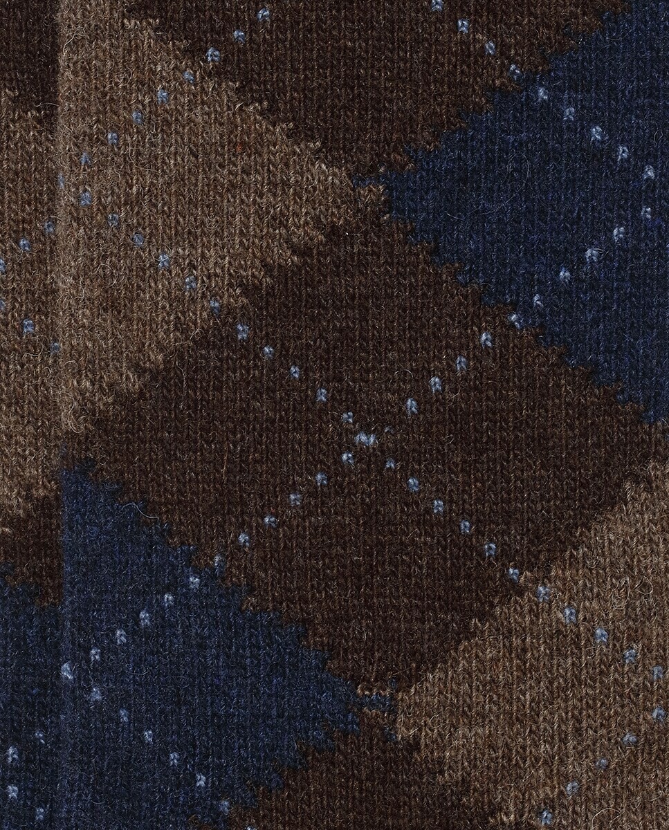 Классические коричневые носки с интарсией в виде ромбов. Носок и пятка контрастны. Доступен в одном размере.