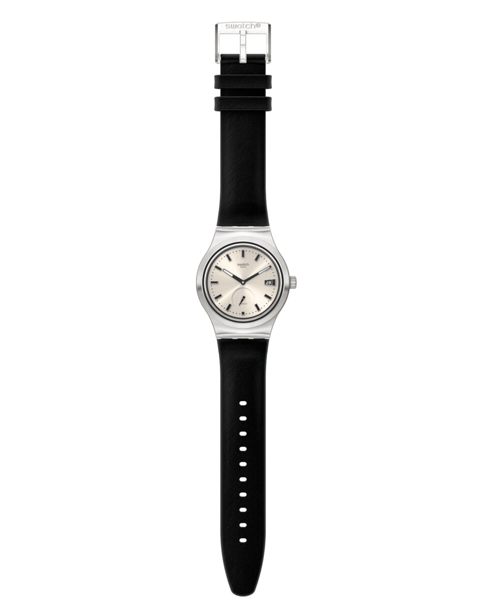 Неизбежные часы с черным кожаным ремешком Swatch, черный