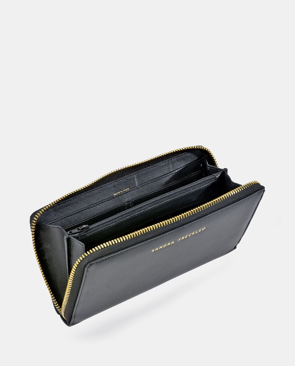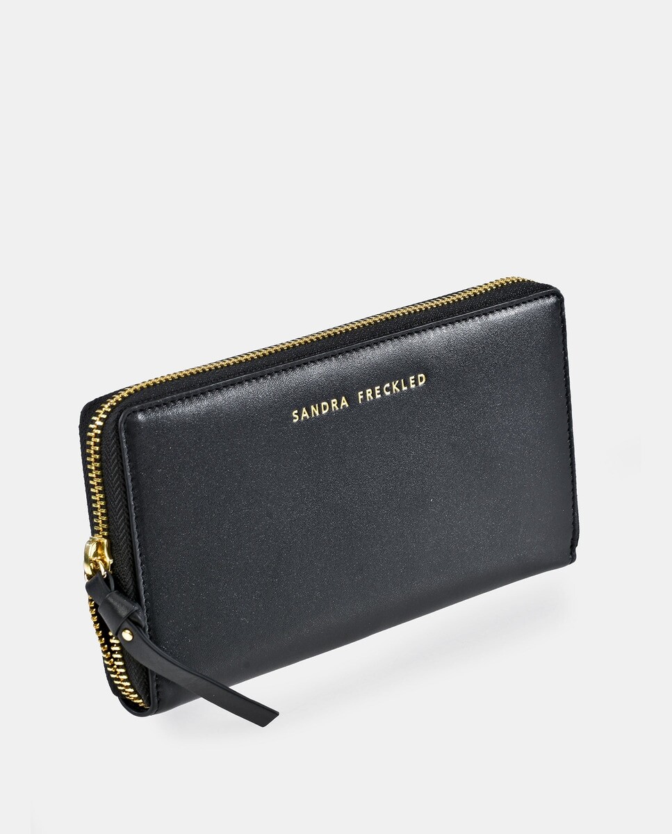 Кошелек с портмоне из черной кожи Sandra Freckled, черный
