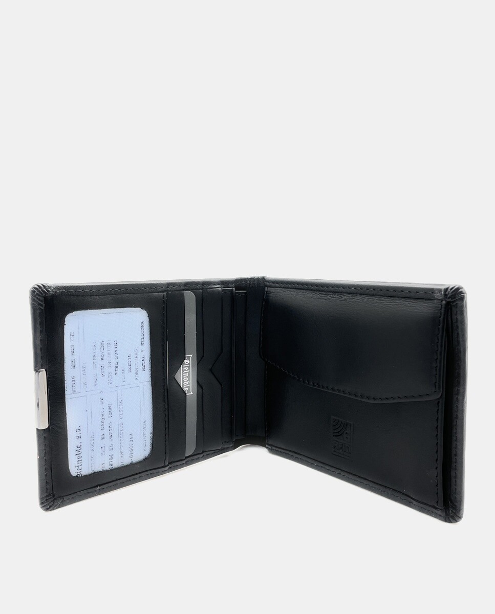 Черный кожаный кошелек в американском стиле на пять карт. Внутренний кошелек и встроенная система защиты от копирования карт.