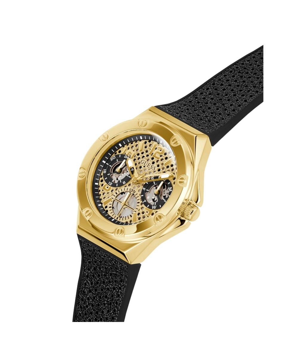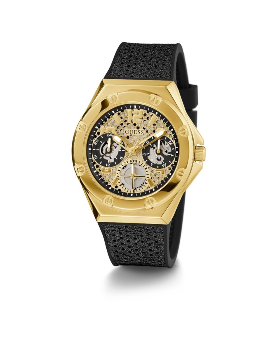 Силиконовые женские часы Asteria GW0620L2 на черном ремешке. Часы Guess ASTERIA сочетают в себе стиль и функциональность в стальном корпусе диаметром 40 мм с многофункциональным аналоговым механизмом. Его минеральный кристалл защищает его современный вид, а водонепроницаемость на глубине 50 метров добавляет универсальности. Черный силиконовый ремешок в сочетании с золотым корпусом создает привлекательный и современный вид.