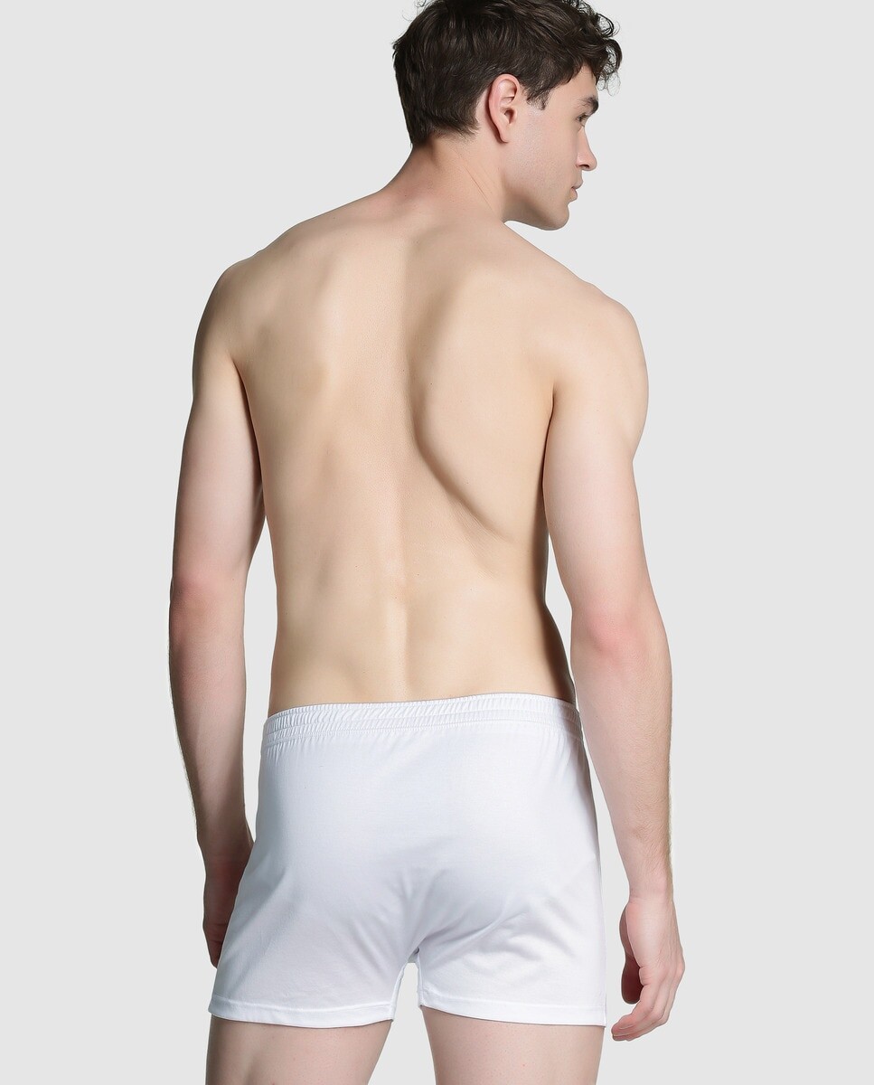 Трикотажные боксеры белого цвета с отверстием на пуговице. Покрытая эластичная талия. На талии имеется вышитая нашивка с названием бренда. По соображениям гигиены эти предметы не подлежат обмену или возврату.