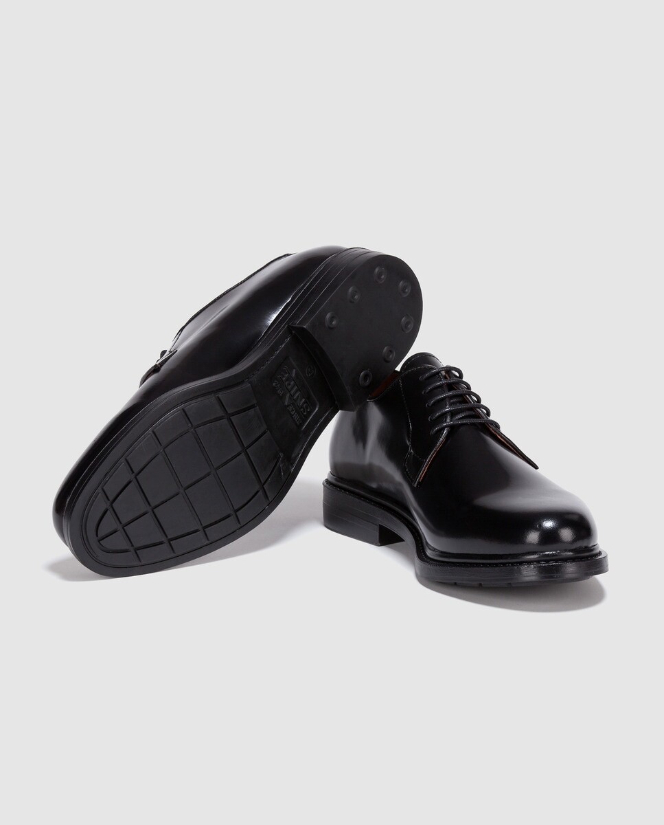 Блюхеры из гладкой черной кожи с кружевной застежкой в ​​тон. резиновый пол. На них есть этикетка с названием бренда.