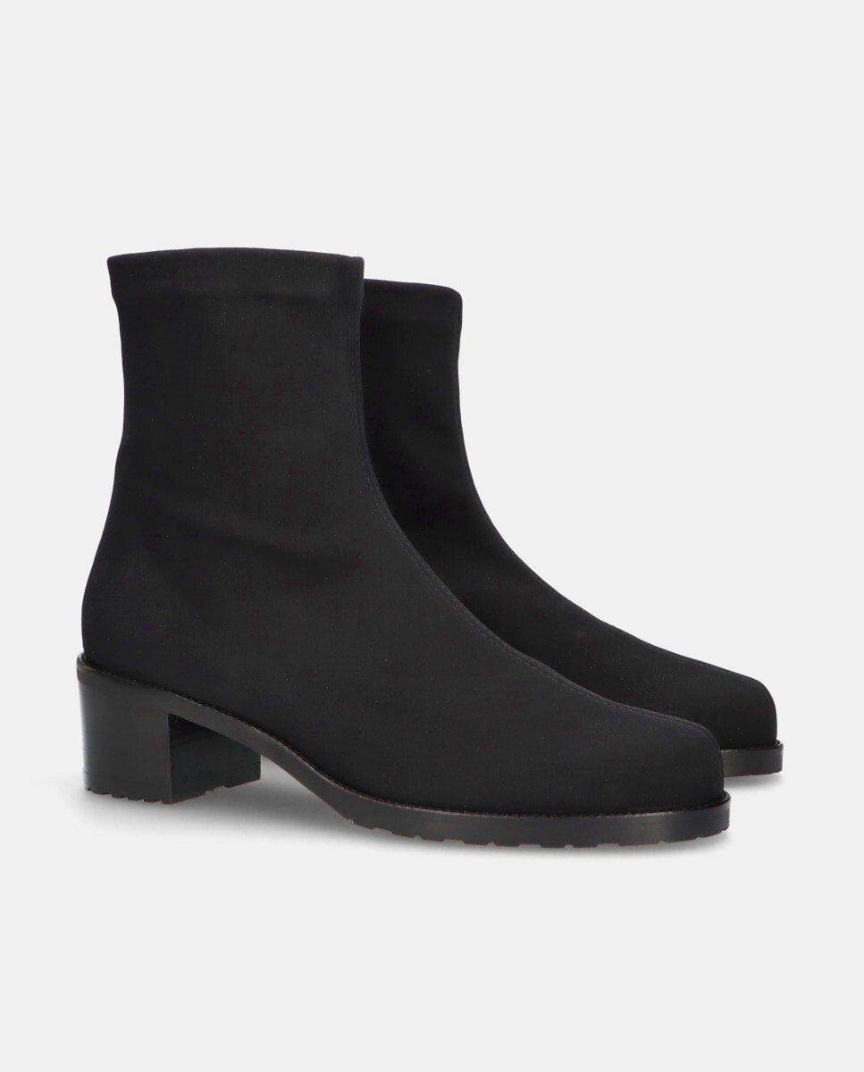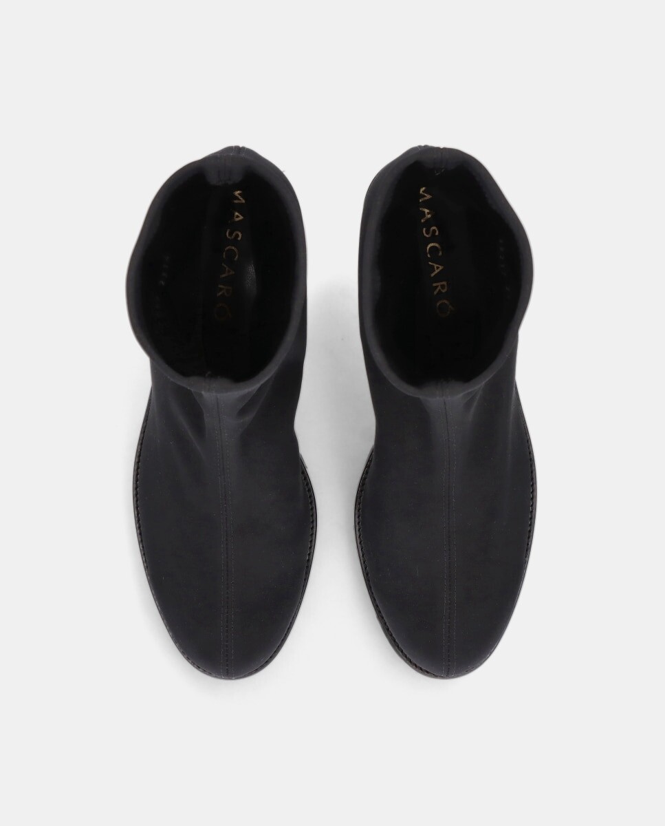 Ботильоны из водонепроницаемой эластичной ткани черного цвета с каблуком высотой 5 см, резиновой подошвой, стелькой и тканевой подкладкой. MASCARÓ начал создавать балетки ручной работы на средиземноморском острове Менорка в 1918 году. Сегодня они стали одним из символов испанской обуви, имеющим широкое международное присутствие и престижный имидж бренда. Традиции, дизайн и инновации – вот девиз, который обобщает философию MASCARÓ во всех его творениях. Проекты, в которых ремесленные традиции, унаследованные от более чем 100-летней истории, сосуществуют с применением самых передовых технологий во всех производственных процессах. Коллекции MASCARÓ соответствуют стилю современных и утонченных женщин, которые наслаждаются классической элегантностью, не забывая при этом о комфорте.