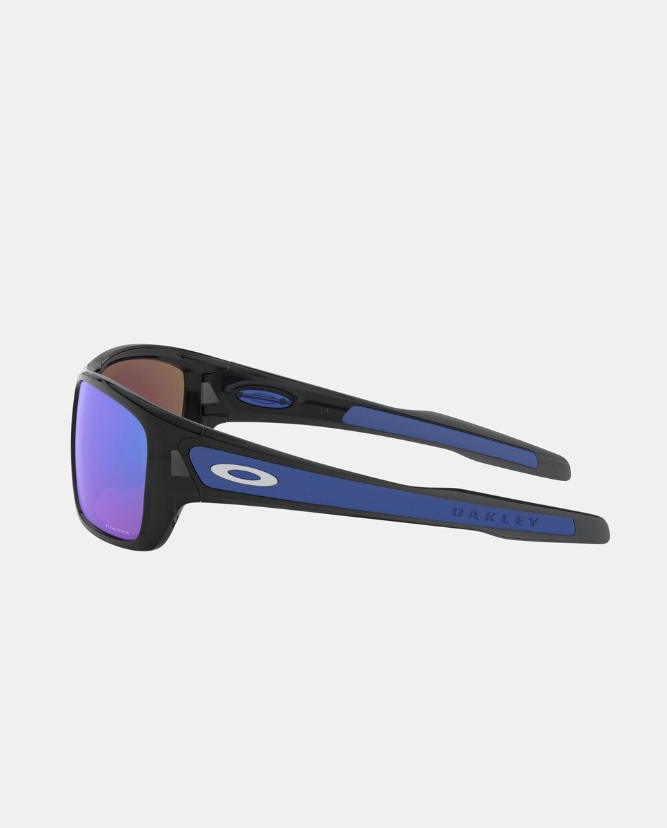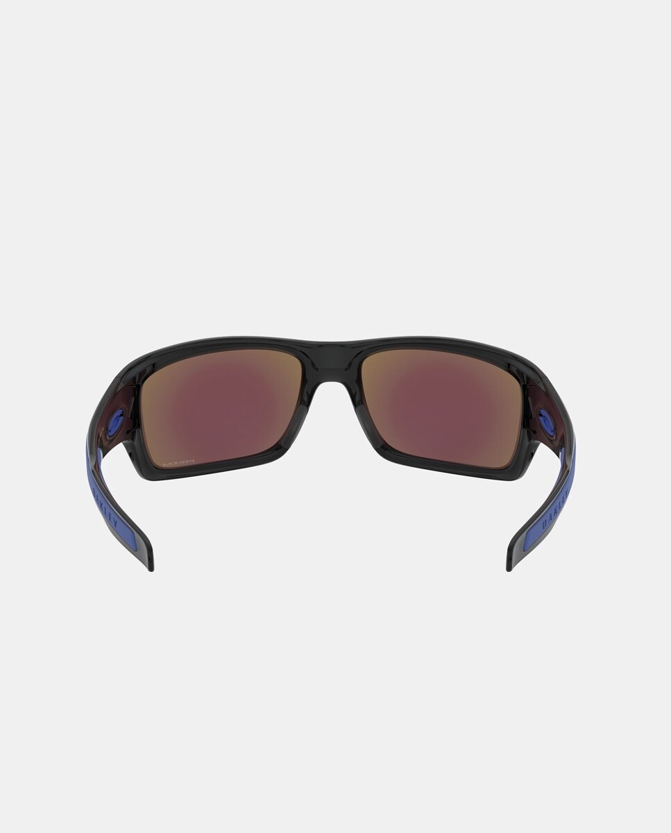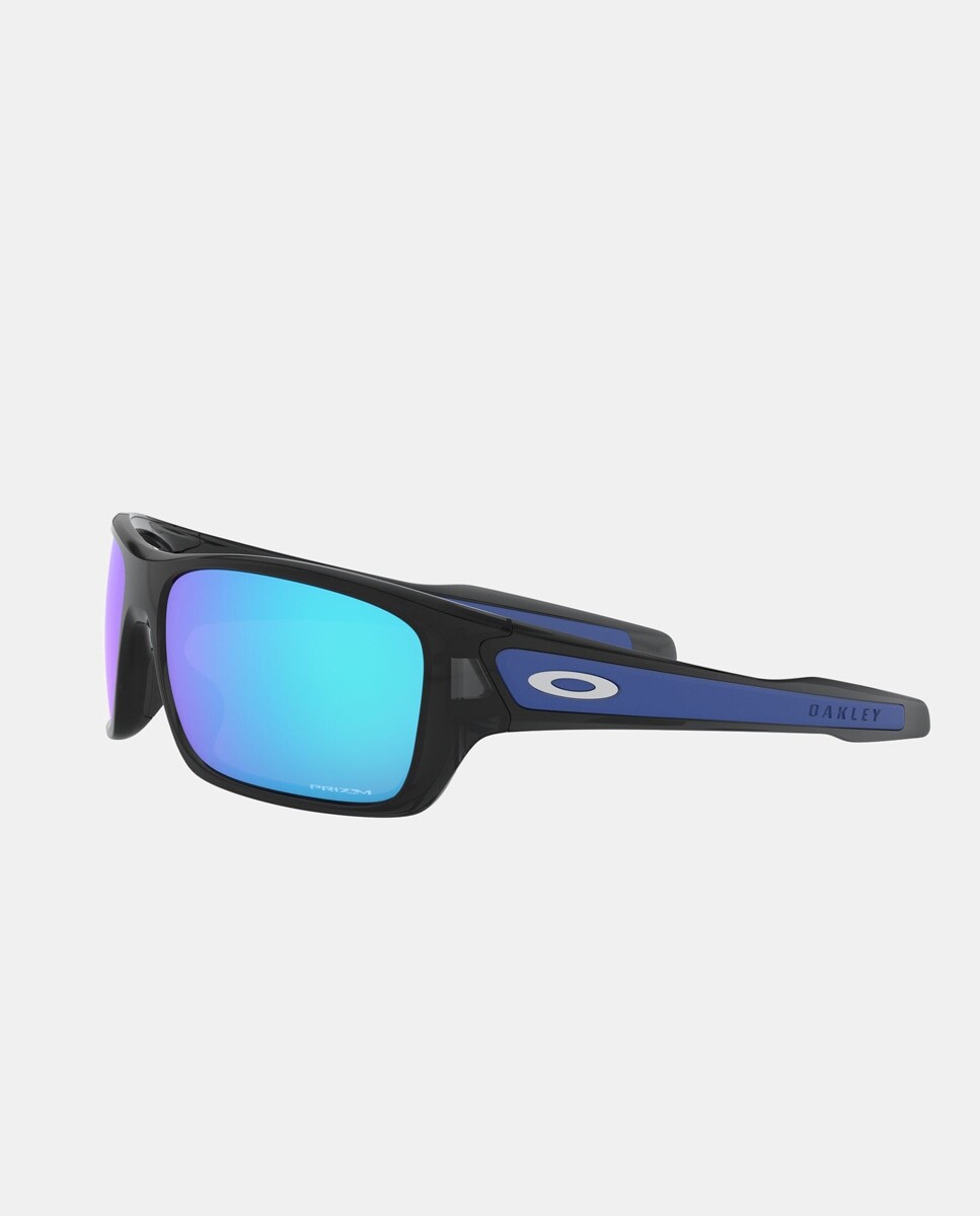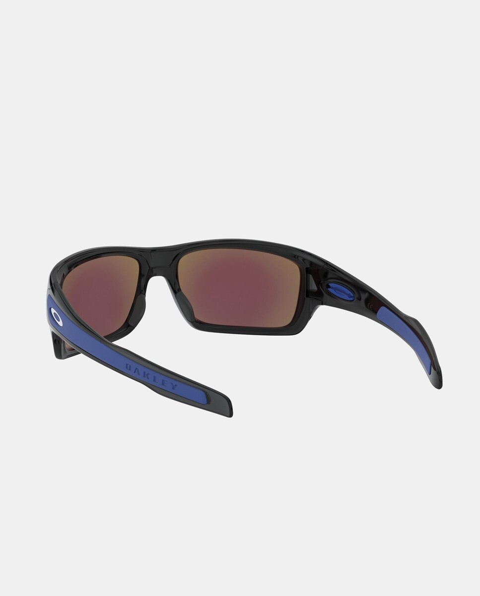 Очки модель 0OO9263 в черной литой прямоугольной оправе. Имеет синие зеркальные линзы.