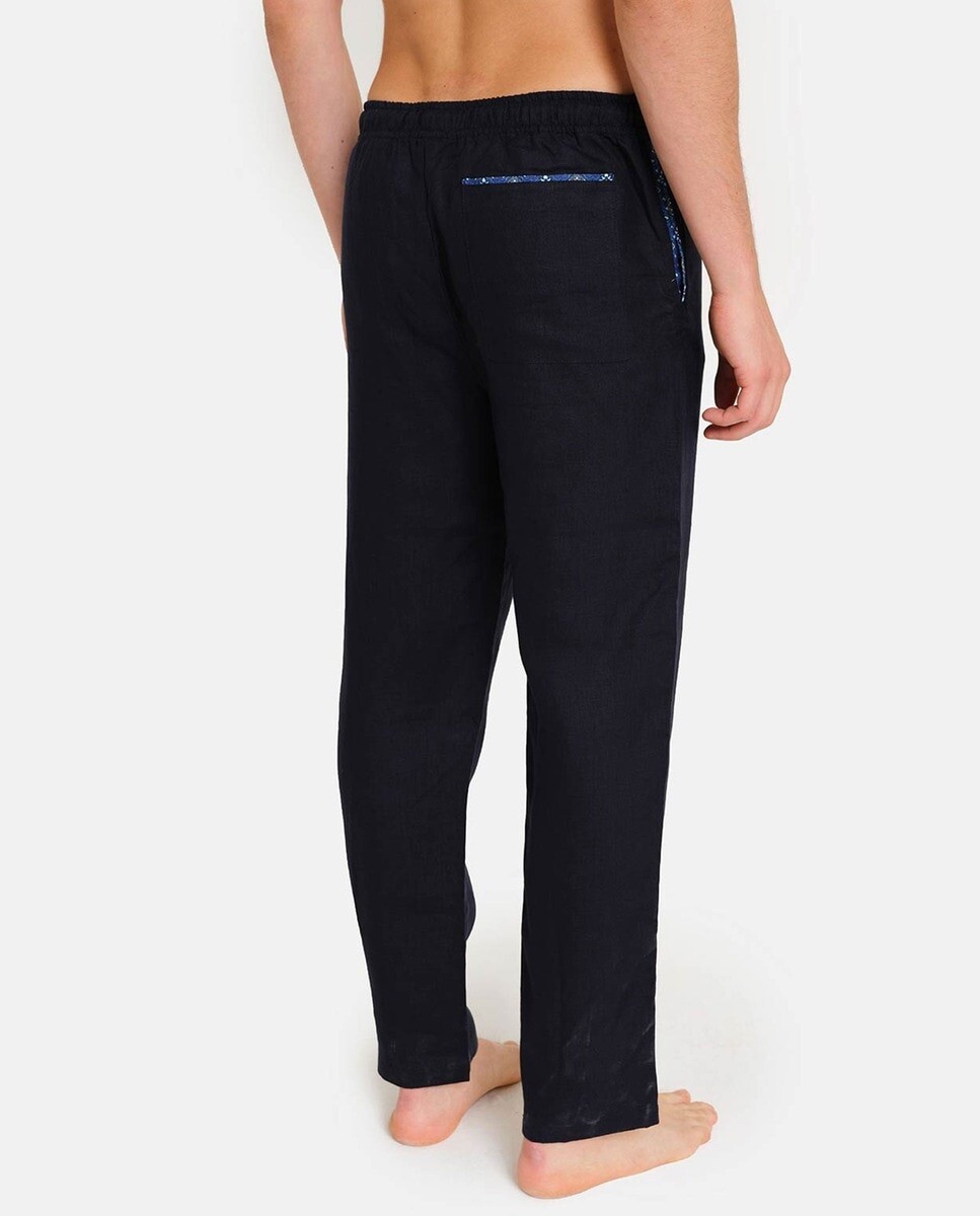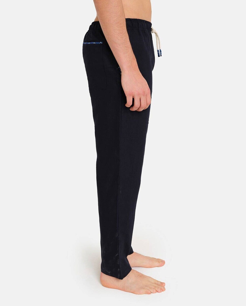 Классический стиль. Эти изысканные однотонные брюки — удобная одежда. универсальный. Имеет два боковых кармана. задний с внутренним контрастным рисунком. Эластичный пояс для более свободной посадки. Сделал. рука в Италии с особым вниманием. подробности.