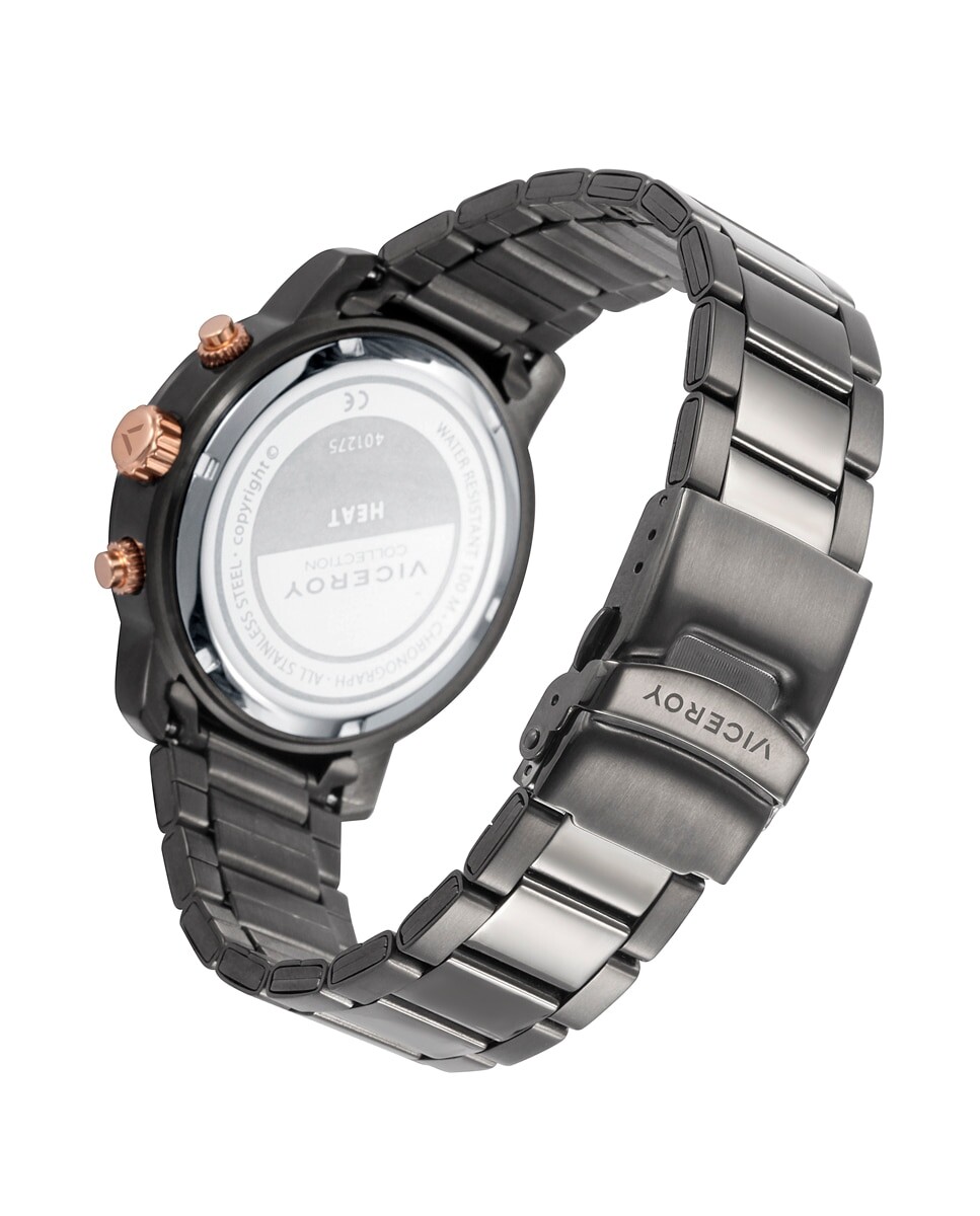 Мужские часы Viceroy HEAT Chronograph с черным циферблатом с розовыми и красными деталями IP, серым стальным браслетом и корпусом IP.