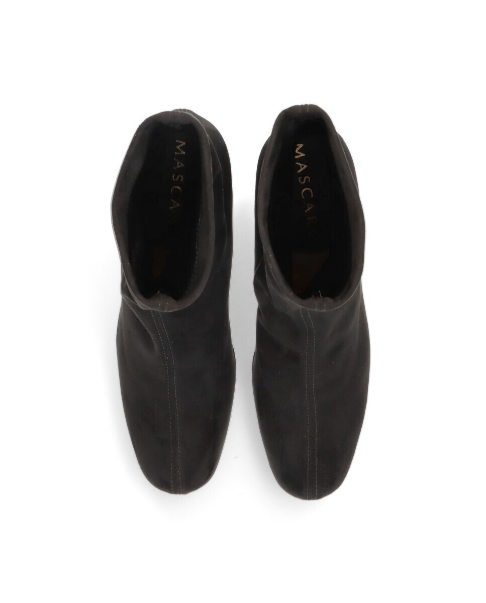 Ботильоны из эластичной ткани с эффектом замши черного цвета, каблук высотой 6,5 см, резиновая подошва, стелька и кожаная подкладка. MASCARÓ начал создавать балетки ручной работы на средиземноморском острове Менорка в 1918 году. Сегодня они стали одним из символов испанской обуви, имеющим широкое международное присутствие и престижный имидж бренда. Традиции, дизайн и инновации – вот девиз, который обобщает философию MASCARÓ во всех его творениях. Проекты, в которых ремесленные традиции, унаследованные от более чем 100-летней истории, сосуществуют с применением самых передовых технологий во всех производственных процессах. Коллекции MASCARÓ соответствуют стилю современных и утонченных женщин, которые наслаждаются классической элегантностью, не забывая при этом о комфорте.