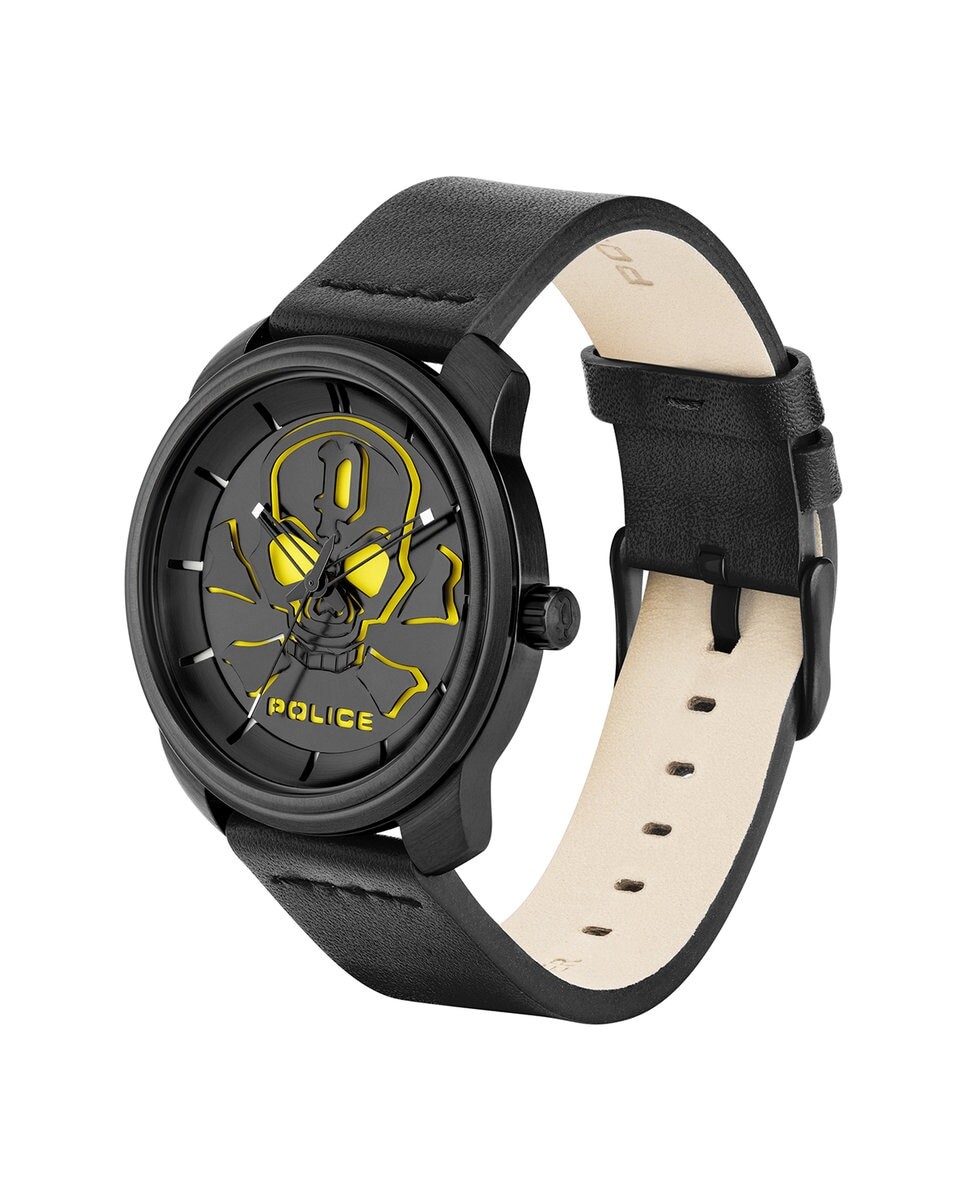 Мужские часы Bleder PL.15714JSB-02 из кожи, с черным ремешком. Полицейские мужские стальные часы. Коллекция BLEDER раскрывает самую подлую часть бренда. Часы с черным ремешком и соответствующим циферблатом с черепом в центре и желтыми деталями. Современность и сила сочетаются в каждой коллекции часов Police, идеально отражая ДНК бренда.