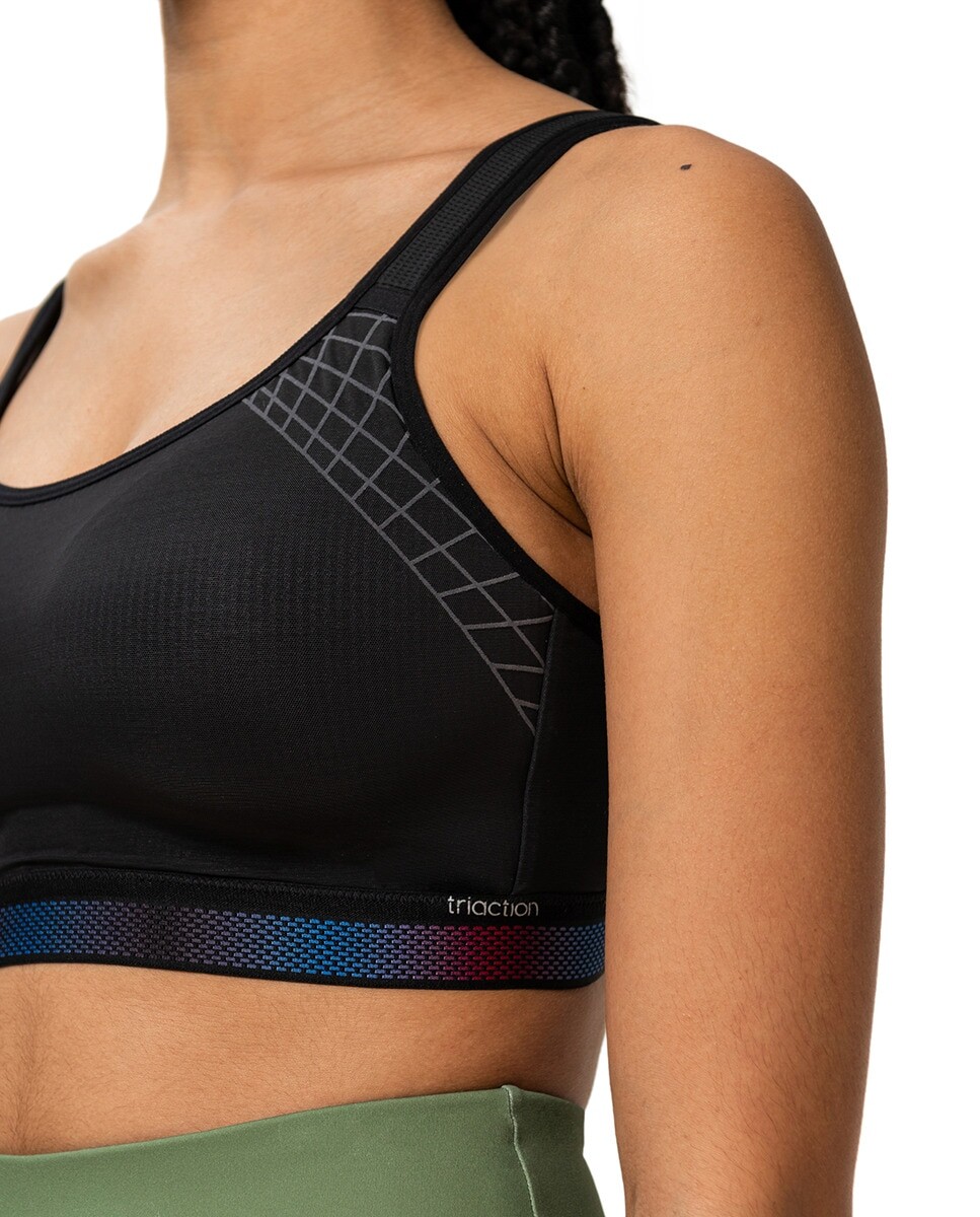 Спортивный бюстгальтер Triumph без косточек и с легкой чашечкой предварительной формы, обеспечивающей воздухопроницаемость и моделирующий эффект. Отличный контроль отскока: уменьшает движение груди на 68%; Максимальная поддержка, протестированная Портсмутским университетом. Широкие, мягкие, перекрещивающиеся лямки для большей универсальности и низкого трения. Меньше швов и более плоская застежка для более комфортной тренировки.