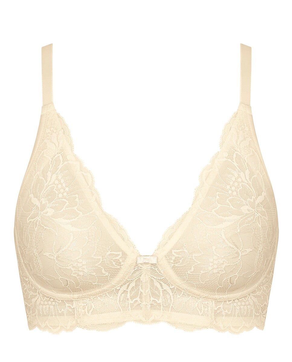 Бюстгальтер без косточек естественной посадки, напоминающий бюстгальтер на косточках. приспосабливайтесь как таковое, но со свободой. комфорт бюстгальтера без косточек. Мягкое прикосновение. Бесшовная кружевная чашка, которая не заметна под одеждой. Более широкая контурная полоса для уникальной детализации.
