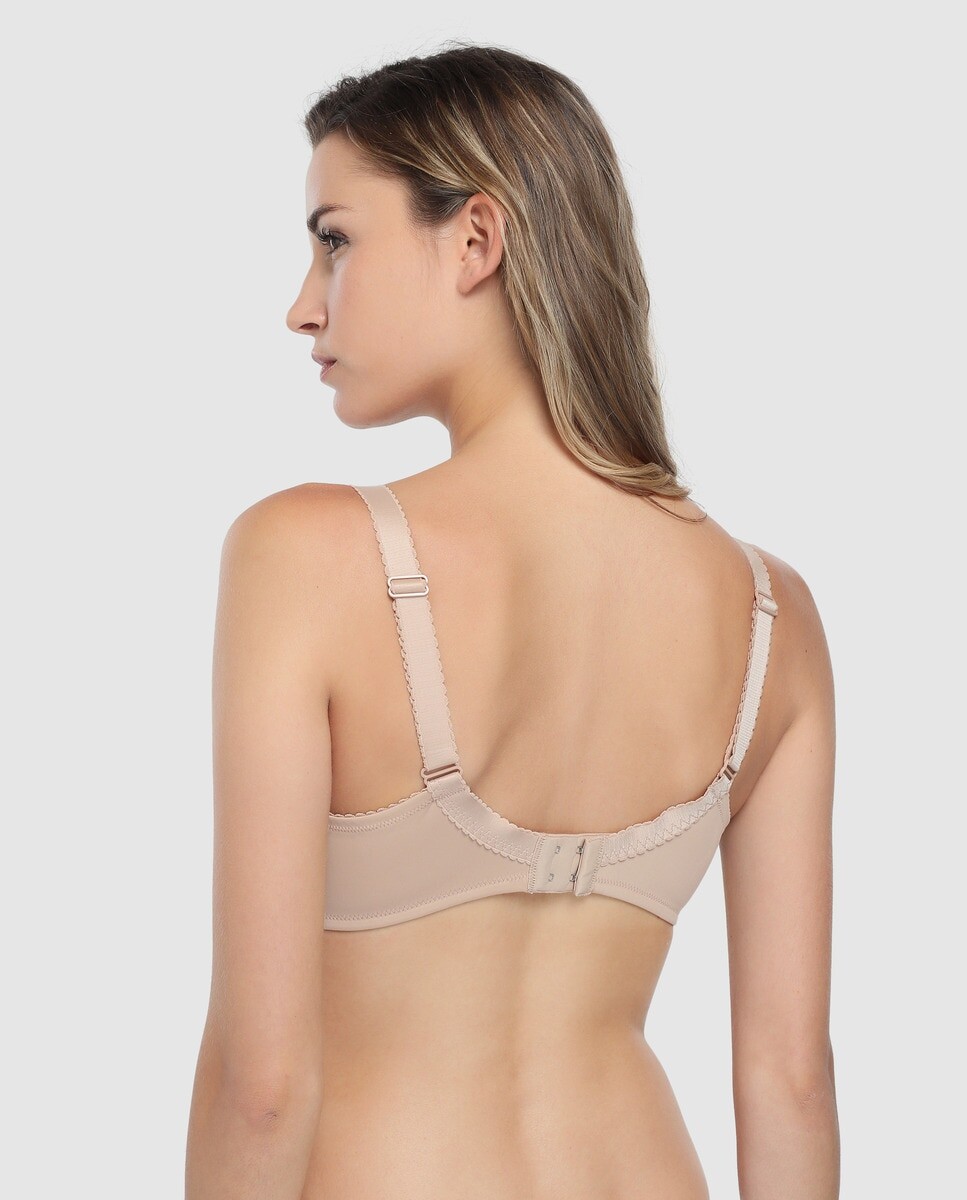 Вместительный бюстгальтер телесного цвета с кружевной отделкой в ​​тон на чашках и кружевной отделкой на вырезе. Указанный размер — испанский/французский (ESP/FR), поэтому будет отправлен именно выбранный размер. На этикетке полученной вами одежды вы сможете увидеть размер производителя (ЕС) и его соответствие размеру, используемому в Испании (ESP/FR).