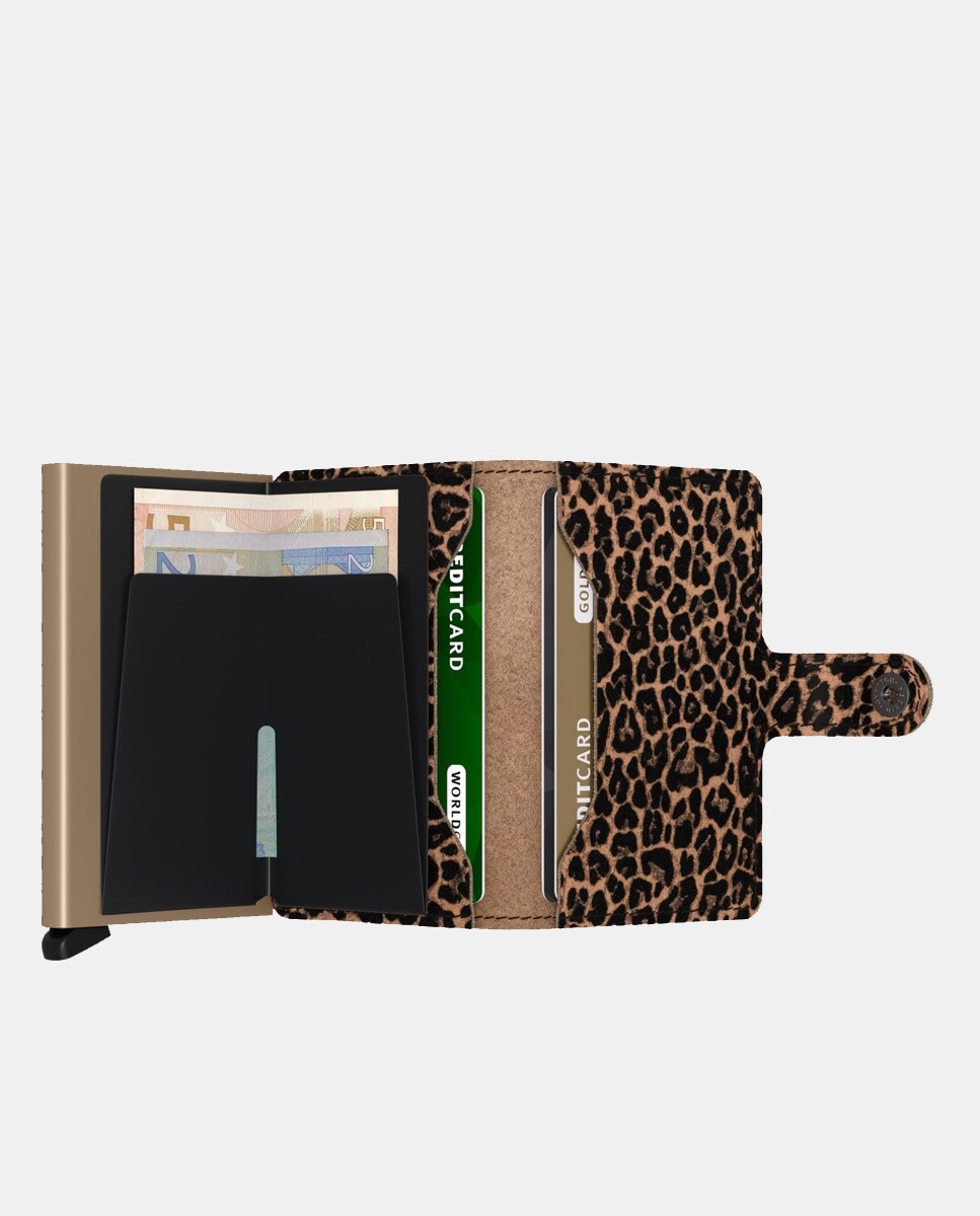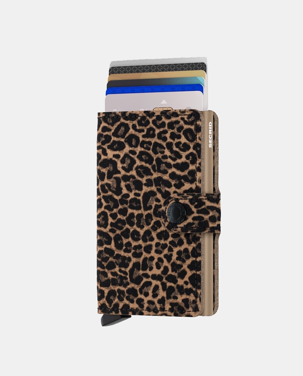Кожаный держатель для карт с животным принтом, вместимостью до пяти карт, с защитой RFID и дополнительным местом для большего количества карт и купюр внутри.