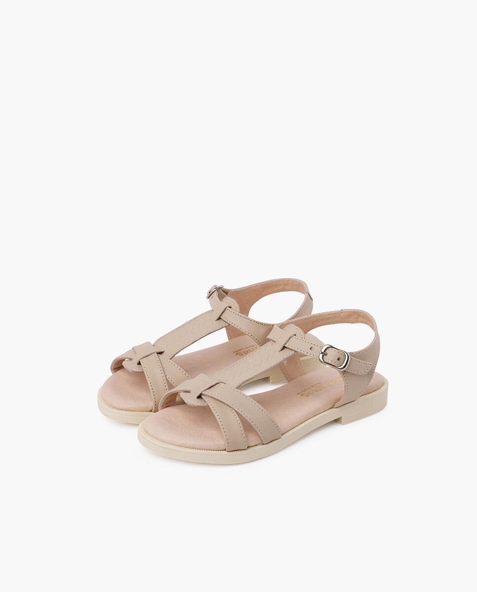 Открытые босоножки из мягкой кожи для девочки Pisamonas, бежевый
