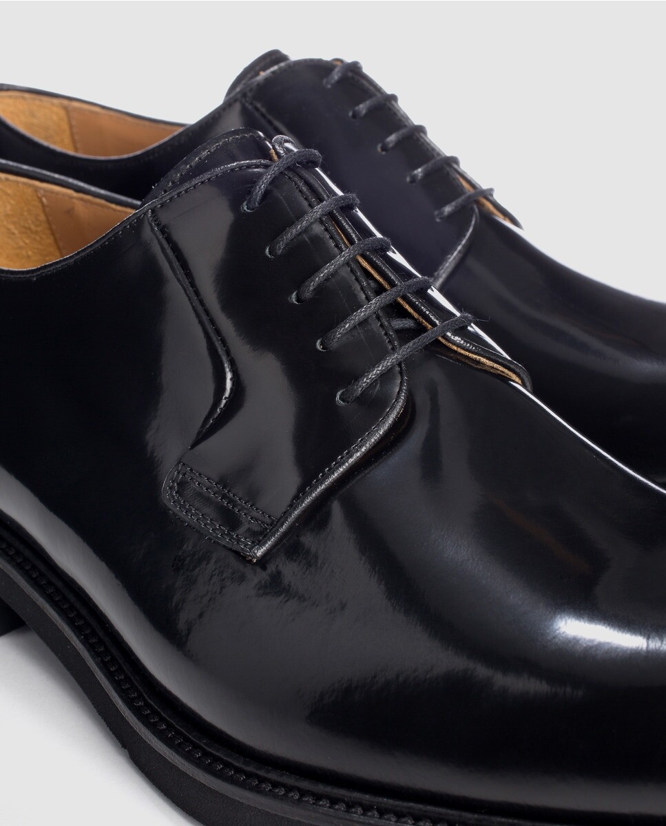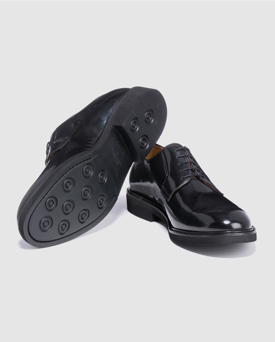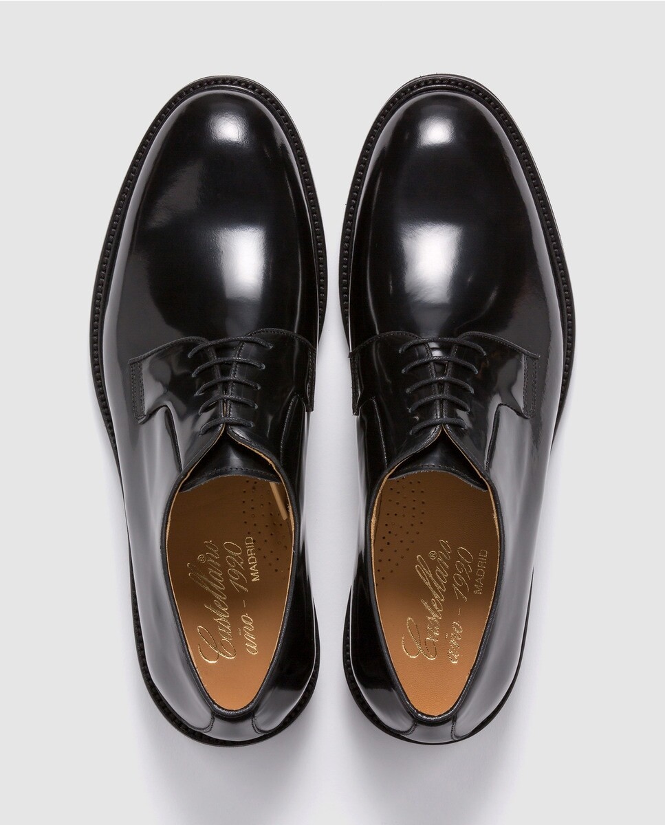 Классические туфли из черной кожи с гладким верхом, шнуровкой в ​​тон и легкой резиновой подошвой.