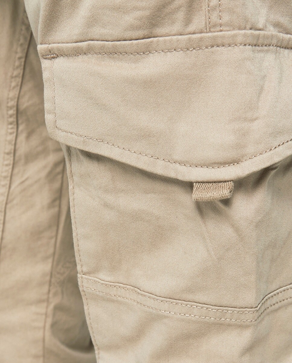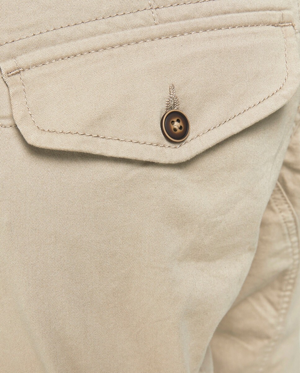 Брюки в стиле карго. Застежка на пуговицу и молнию. С боковыми карманами. Бежевый.