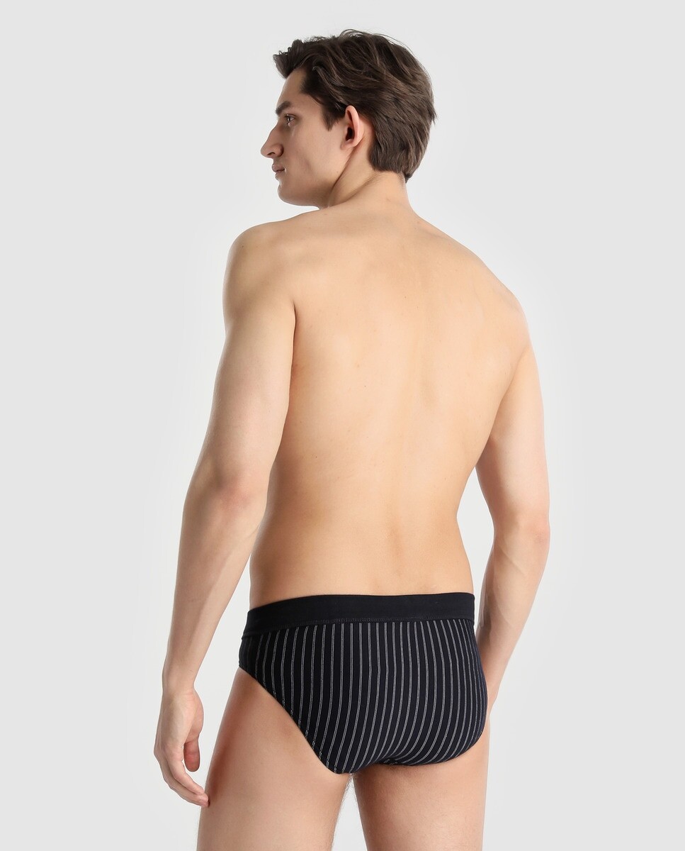 Slip sin abertura de color azul marino y raya diplomática. Имеет эластичную талию с вышитой фирменной нашивкой. Из соображений гигиены обмен или возврат этих товаров не принимаются.
