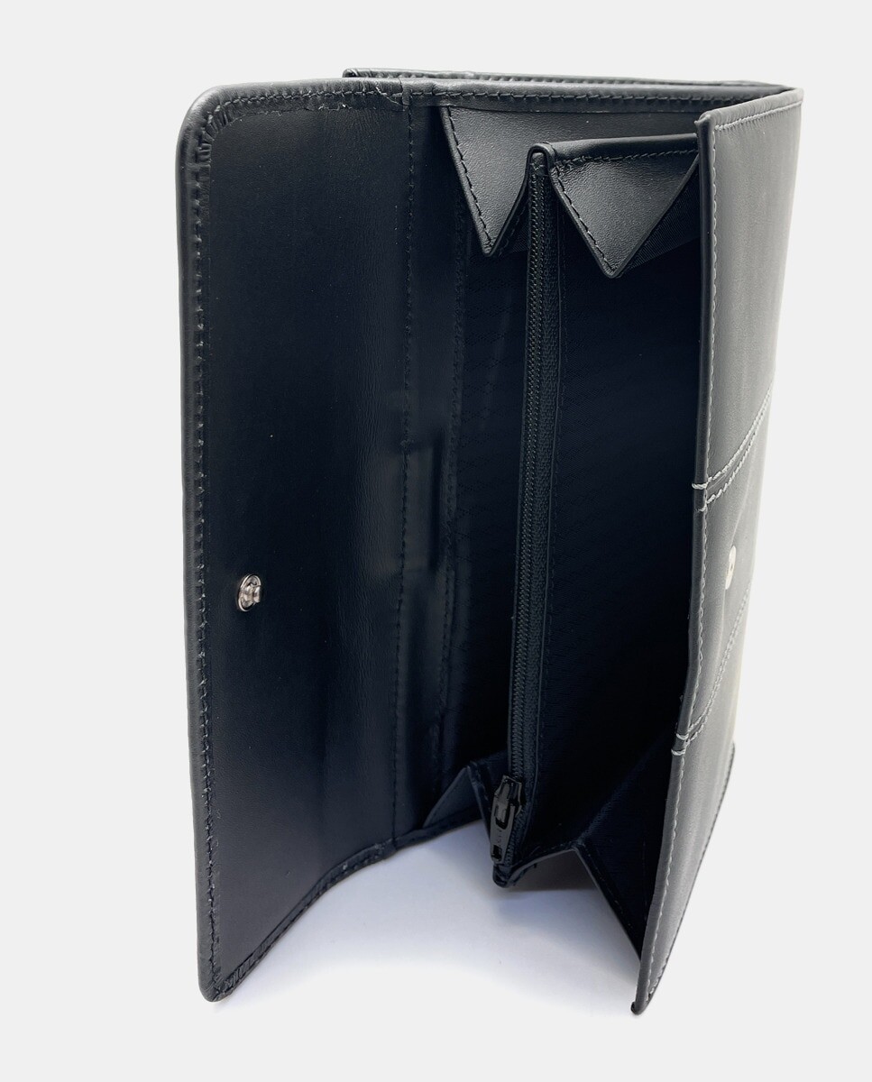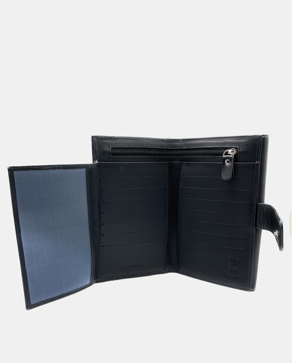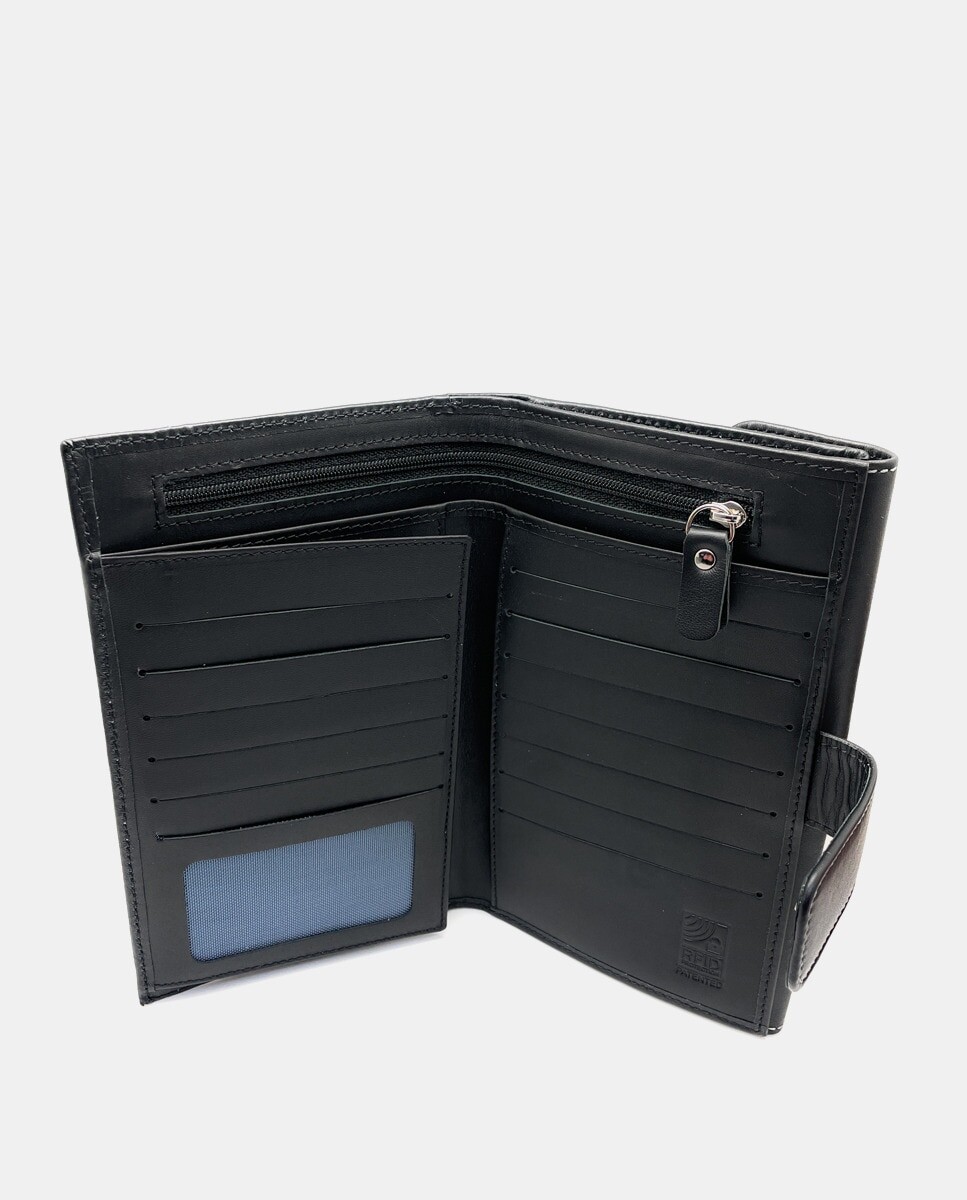 Большой черный кожаный кошелек на двадцать карт Pielnoble, черный