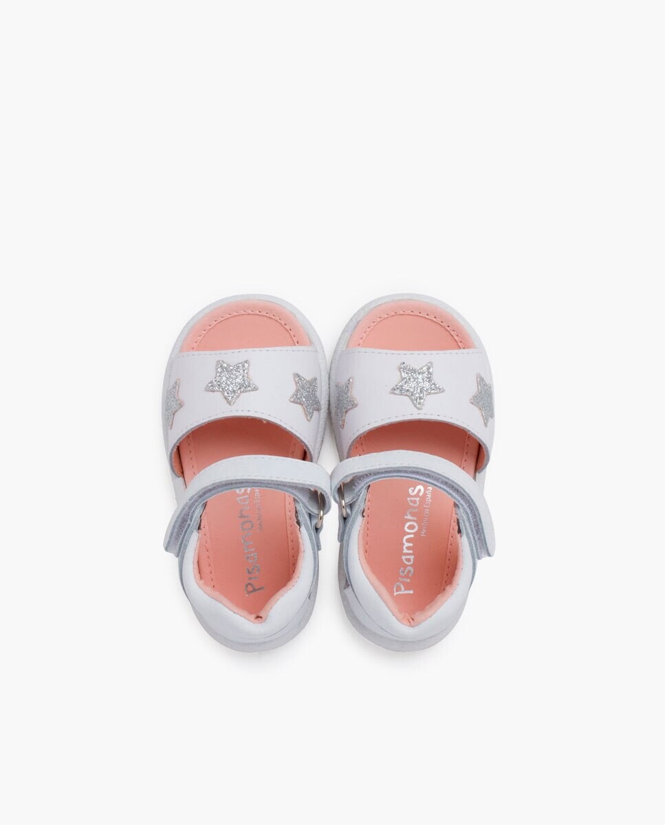Сандалии "Первые шаги" девочки со звездами и блестками Pisamonas, белый