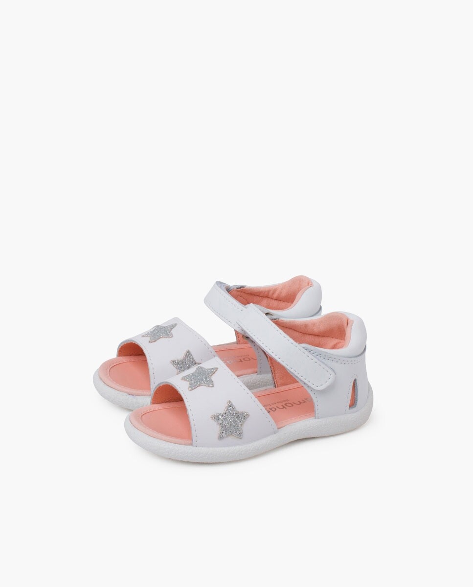 Посмотрите, какие классные босоножки со звездами для девочек! Для тех, кто еще учится делать первые шаги и для тех, кто уже легко ходит по парку. С широким ремешком, украшенным тремя блестящими звездами, ваша дочь почувствует себя рок-звездой! Эти сандалии настолько же удобны, насколько и красивы, с тонкой гибкой резиновой подошвой, которая позволит вашему малышу свободно передвигаться. Застежка-липучка легко застегивается, поэтому ваш малыш сможет сделать это самостоятельно, без посторонней помощи, и почувствует себя очень независимым. Закрытая пятка имеет небольшие отверстия по бокам для большей воздухопроницаемости, а бортик пятки очень мягкий и набитый, чтобы предотвратить натирание и обеспечить комфорт вашей дочери в течение всего дня. А самое приятное то, что они сделаны из высококачественных материалов в Испании! Итак, если вы хотите, чтобы этим летом ваша малышка была самой красивой в парке, не медлите и купите ей эти звездные сандалии. Они вам понравятся!