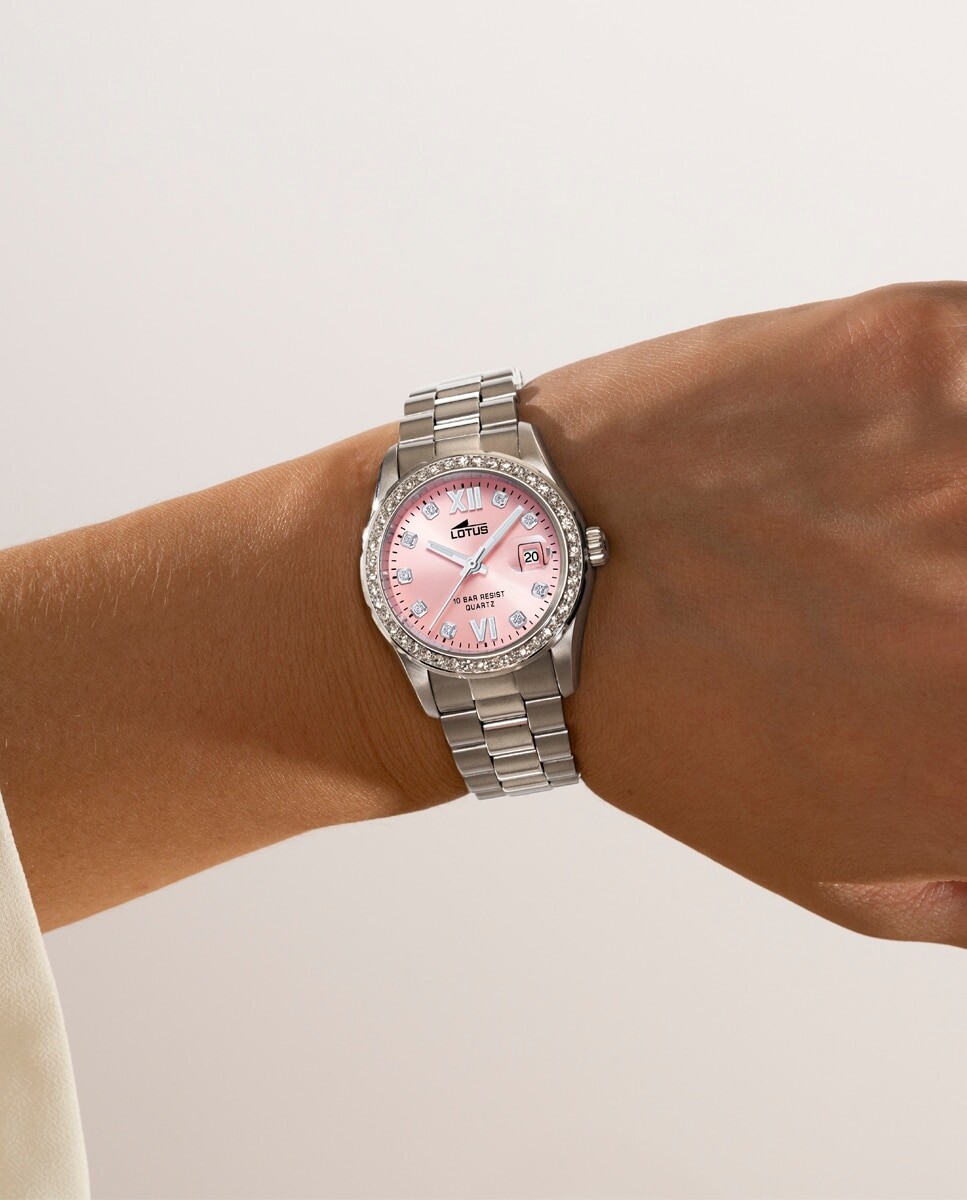 Детали. уход Женские часы Lotus 18933/2 – элегантный вариант. сложный. Стальной корпус украшен цирконами, придающими им легкий блеск. гламур. Эти часы идеально подойдут женщинам, ищущим эксклюзивный дизайн. последнего поколения. Lotus — это бренд, известный своим современным дизайном. авангард Их часы рассчитаны на современную аудиторию. городской, который ценит качество. стиль. С часами Lotus 18933/2 вы сможете носить аксессуар, который дополнит любой наряд, даже повседневный. Формальный. Помимо эстетики, эти часы также предлагают функциональность. точность. Он имеет качественный механизм, гарантирующий точное измерение времени. надежный. Ремешок из нержавеющей стали устойчив. Прочный, что гарантирует, что вы сможете наслаждаться этими часами в течение длительного времени.Короче говоря, часы Lotus 18933/2 — идеальный выбор для женщин, которые ищут элегантный, современный аксессуар. качества. Часы Форма корпусаКруглый Материал корпусаНержавеющая сталь 316L Размеры корпуса 32 0,5 мм Толщина корпуса 9,25 мм Цвет циферблатаРозовый Ремешок цветСеребристый Материал ремешкаСталь