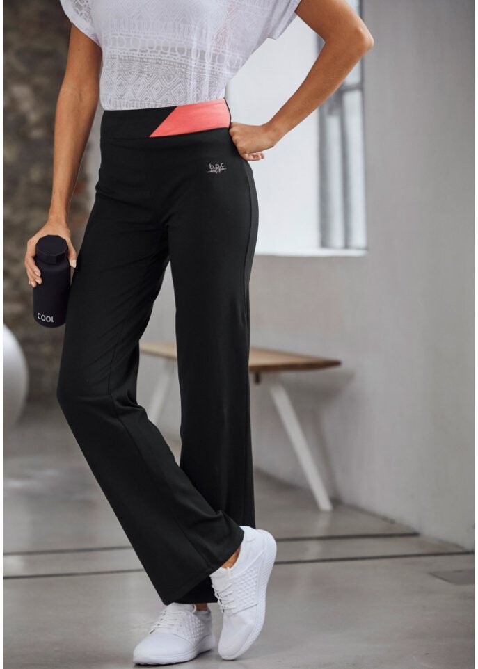 Расклешенные спортивные брюки из хлопка Bpc Bonprix Collection, черный