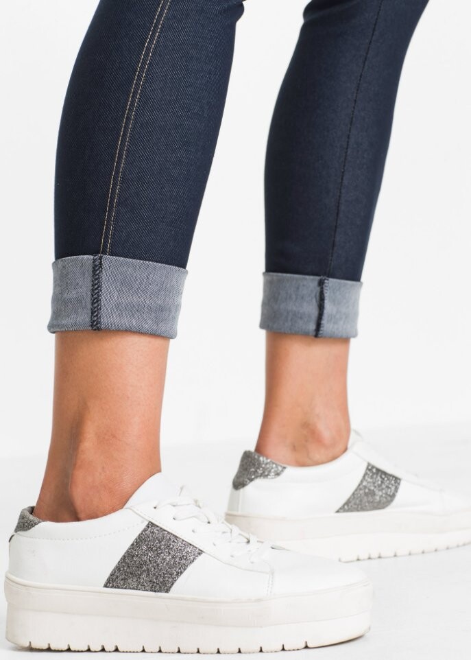 Модные леггинсы в джинсовом стиле от Rainbow впечатляют своей облегающей фигурой. Джеггинсы, сочетание джинсов и леггинсов, очень модны и прекрасно сочетают в себе преимущества обоих брюк: стильный внешний вид джинсов и непревзойденный комфорт леггинсов. В сочетании с футболкой и обувью на высоком каблуке очень облегающие брюки можно скомбинировать и создать необычный наряд.