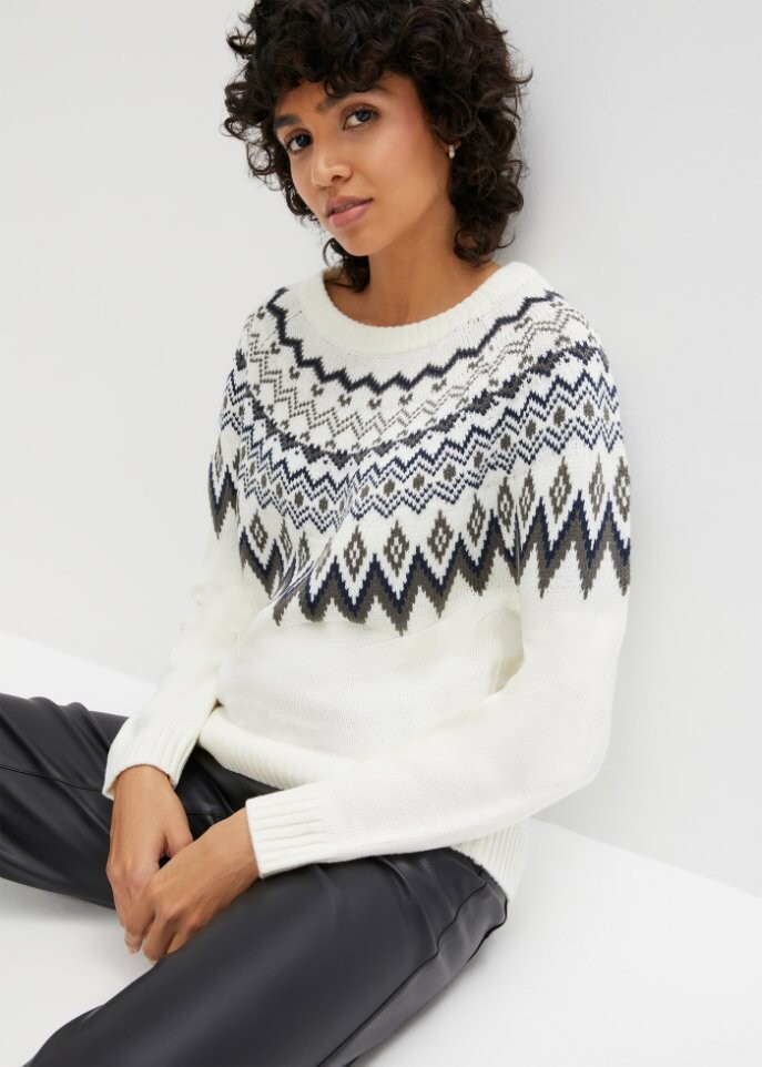 Норвежский свитер с высоким воротником Bpc Bonprix Collection, белый