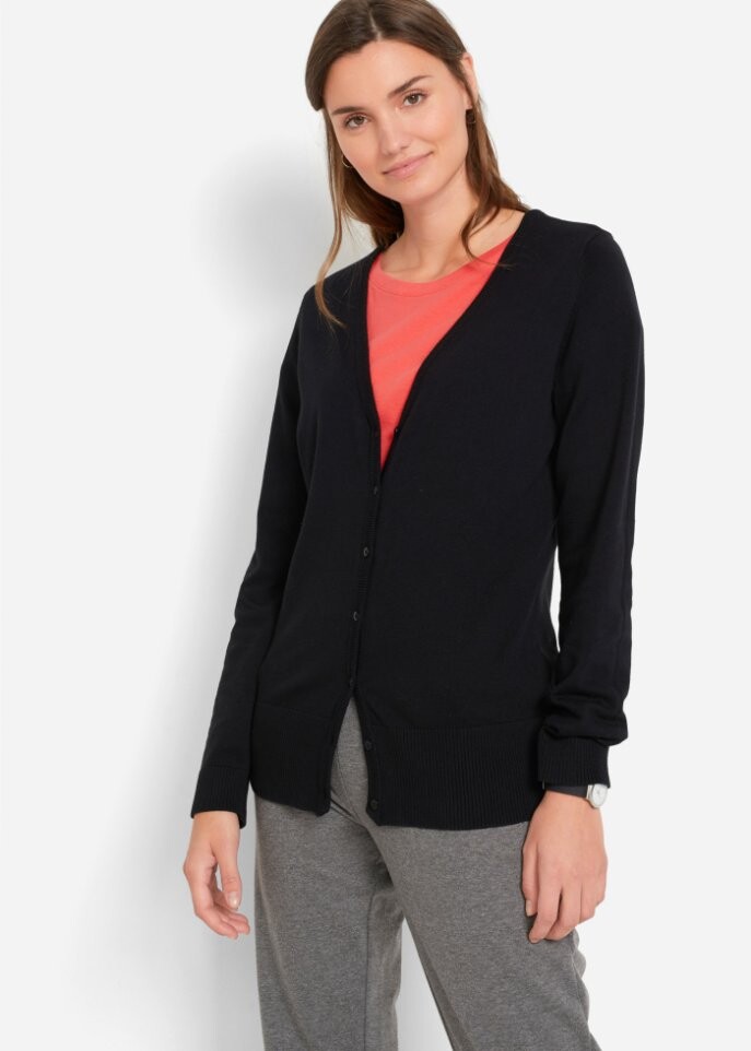 Простой кардиган от bpc предлагает универсальные варианты сочетания с вашим нарядом для отдыха. С закатанными рукавами он смотрится с джинсами повседневно. Юбка длиной до колена придает кардигану спортивный шик.Благодаря облегающему фигуру крою и V-образному вырезу жакет выглядит утонченно и незамысловато. Приятный тонкий трикотаж обеспечивает высокий уровень комфорта.