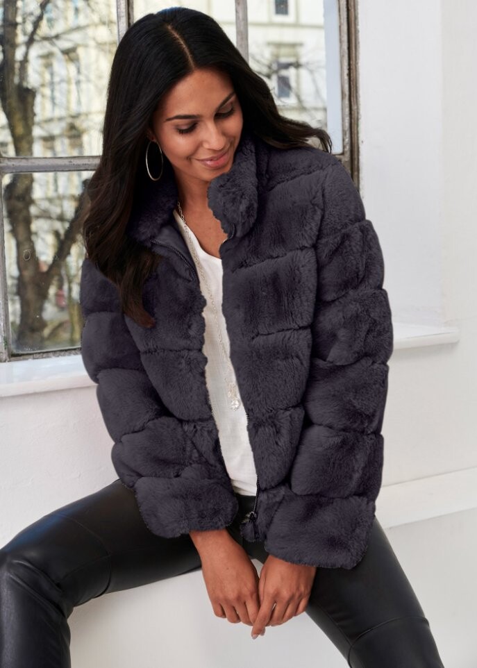 Куртка из искусственного меха на молнии Bodyflirt, черный
