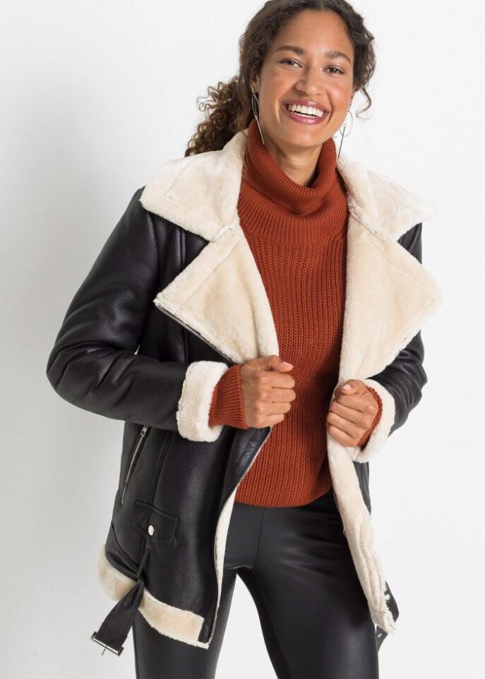 Длинная дубленка с искусственным мехом Rainbow, черный