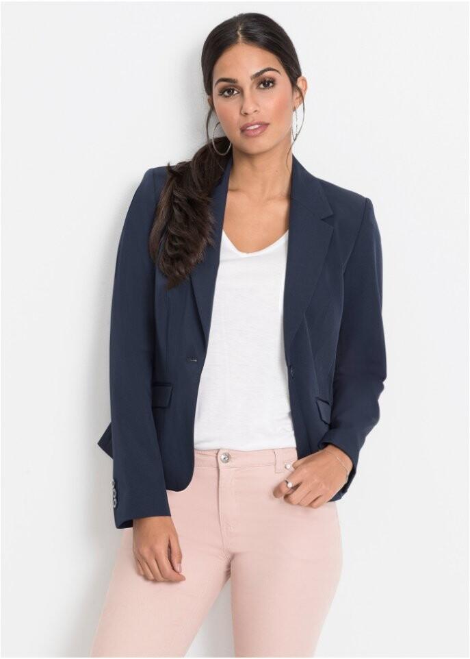 • Будь то офис или другое официальное мероприятие — этот эффектный деловой пиджак стильно дополнит элегантный образ. Короткий пиджак из коллекции Bodyflirt имеет облегающий крой, застегивается спереди на одну пуговицу, длинный воротник с лацканами и два кармана с клапанами придают этому вневременному пиджаку классический вид.