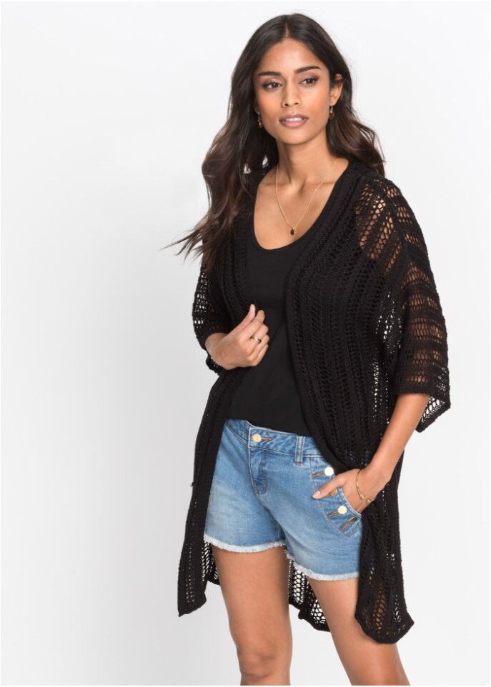 Длинный кардиган с узором из дырочек Bodyflirt, черный