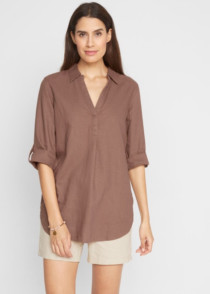 Льняная блузка с рукавами 3/4 Bpc Bonprix Collection, бежевый 5 287₽