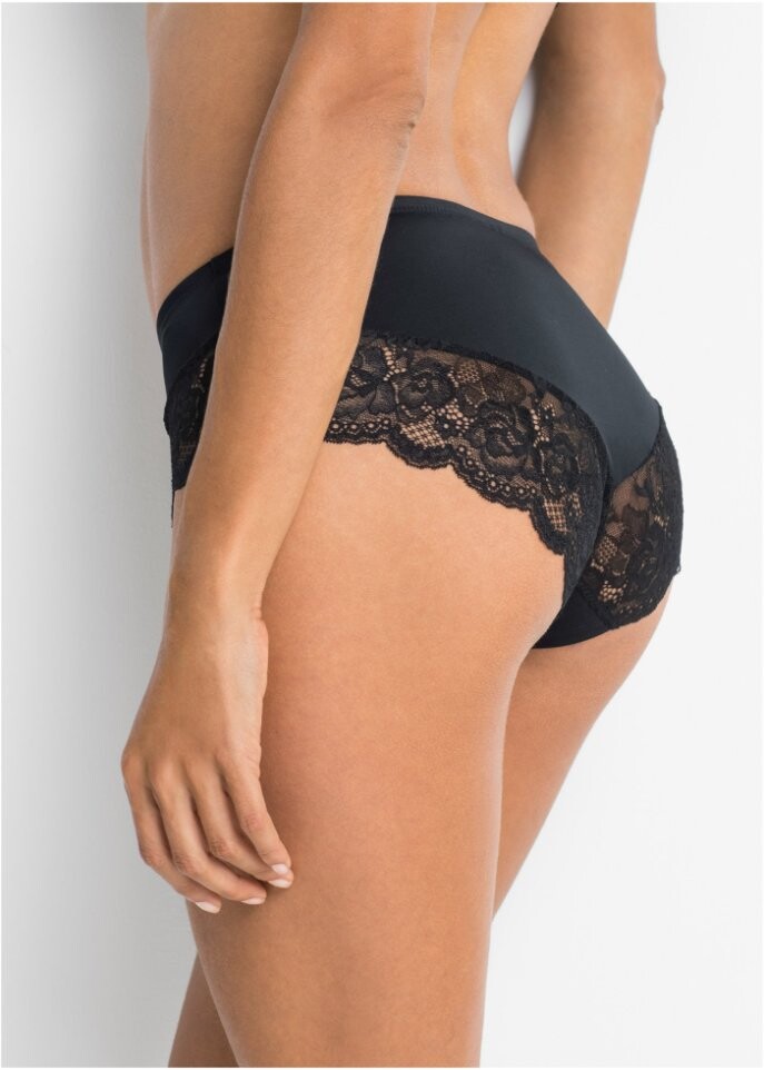 Эти трусики от бренда Bodyflirt выполнены из слегка матовой ткани и выглядят очень современно благодаря кружевным вставкам в области выреза штанин. Трусики можно сочетать с различными бюстгальтерами и они просто великолепно смотрятся. В комплект из 2 шт. входят трусики с простыми брюками сзади, а вторые трусики впечатляют элегантной кружевной лентой.Элегантное кружево внизу штанин образует привлекательные небольшие арки и соблазнительно подчеркивает женскую харизму. Небольшой бантик украшает пояс и завершает перспективный дизайн. Ластовица изготовлена из хлопка.