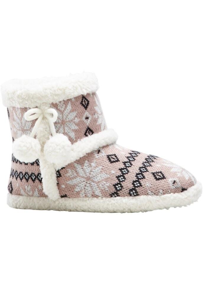 • Выполнена из текстиля с зимним дизайном и двумя декоративными помпонами на голенище.