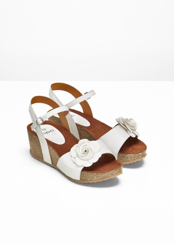 Украшение для каждой ноги: босоножки на танкетке от bpc привлекают внимание. Особым очарованием она обязана украшению большим цветком. Комбинация кожаных ремешков и пробковой подошвы также выглядит привлекательно. Летняя обувь также обеспечивает приятный комфорт при ходьбе: стелька имеет приятную мягкую подкладку. Благодаря пряжке сандалии также можно подогнать под форму вашей стопы. Босоножки на танкетке от bpc прекрасно сочетаются с легким летним нарядом.
