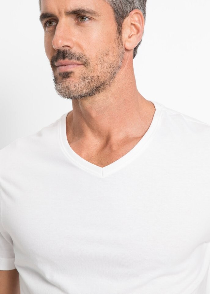 Мужская футболка от БПЦ имеет модный V-образный вырез. Поэтому оно выглядит привлекательно, если носить его отдельно. Но ее также можно легко комбинировать в качестве замены нижней рубашки под многие другие топы.Рубашка VT с короткими рукавами, поставляемая в упаковке по три штуки, является особенно практичным спутником в повседневной жизни.