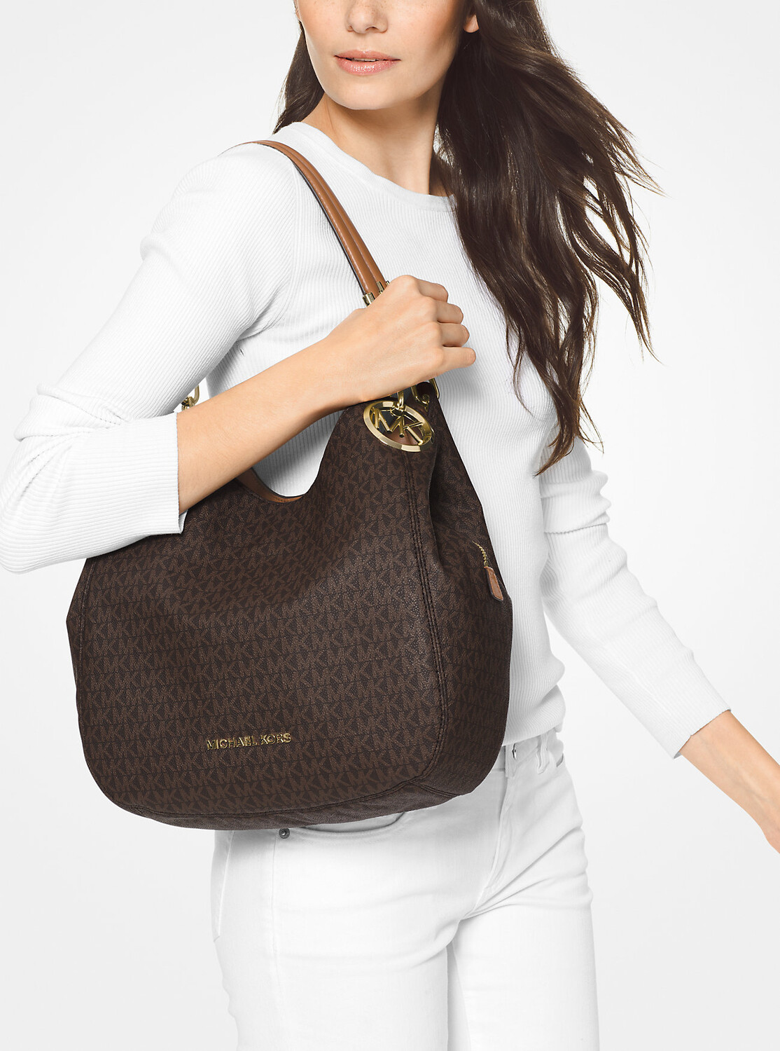 Наша сумка через плечо Lillie сочетает в себе вневременной гламур и повседневную функциональность. Эта сумка с напуском, украшенная полированной фурнитурой, выполнена из канвы с логотипом Signature и открывается, открывая два отделения на кнопках и надежный центральный карман на молнии. Положитесь на него, чтобы стильно и легко носить с собой все необходимое.