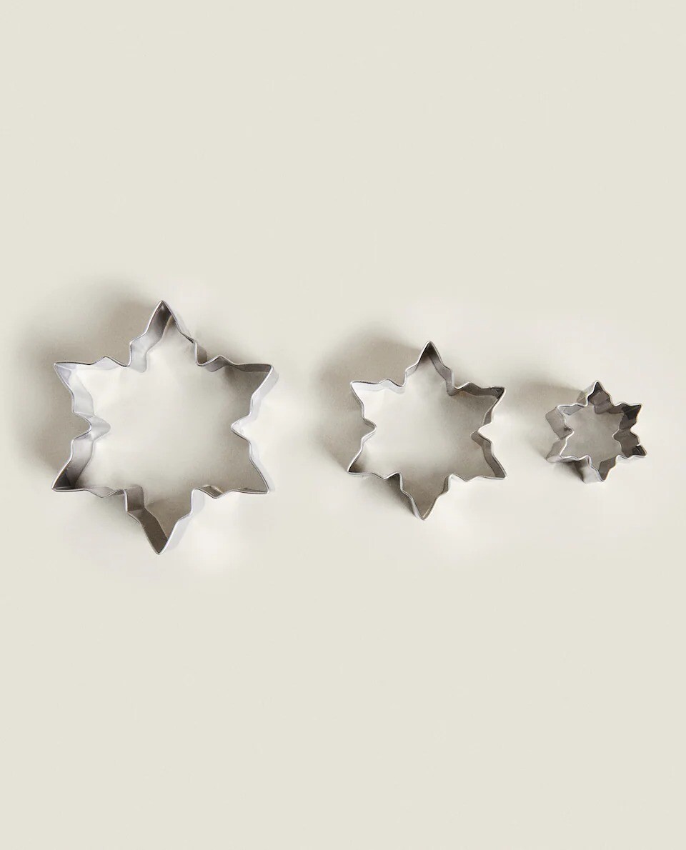 В набор входят: один кондитерский мешок, три формочки для печенья в форме листьев (каждая разного размера) и две круглые формочки с зубчатым краем (каждая разного размера)