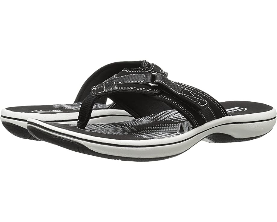 Добавьте немного цветочного дизайна к своей одежде для теплой погоды с помощью сандалий без шнурков Clarks Breeze Sea.