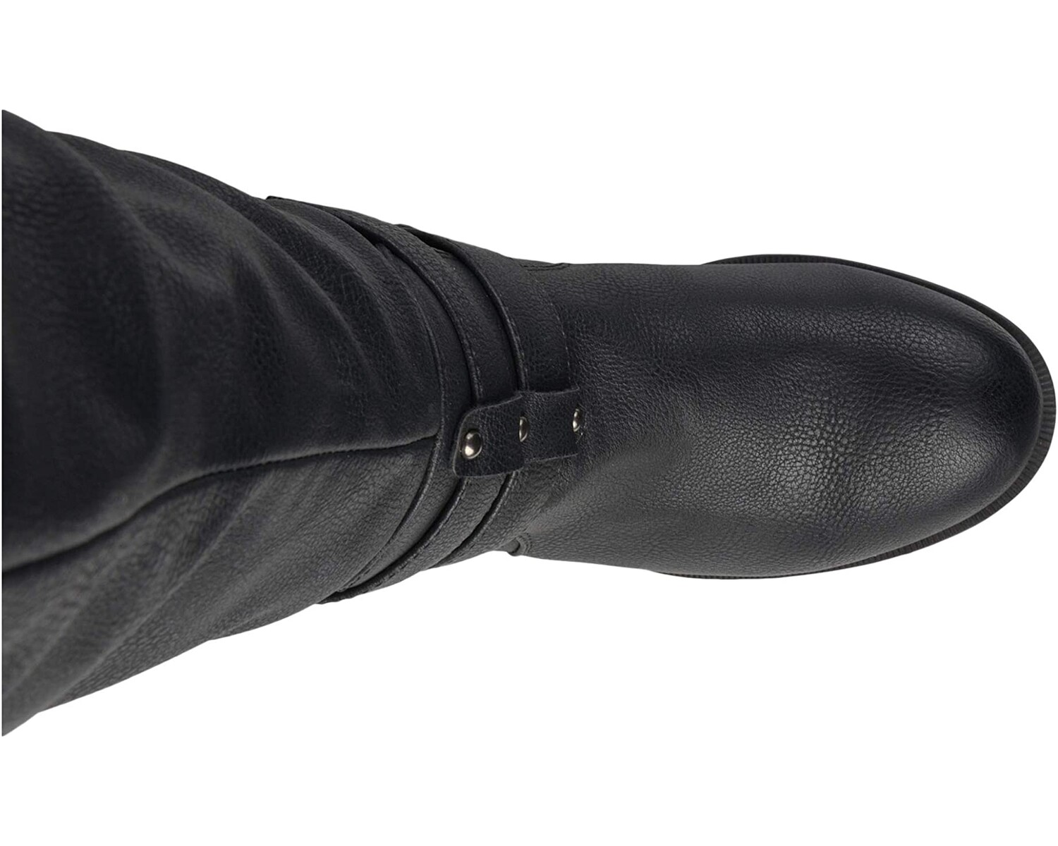 Эти стильные мотоботы от Journee Collection имеют верх из искусственной кожи премиум-класса, который поднимается ниже колен и подчеркивает тонкую простроченную деталь, а также изящные ремешки с пряжками на щиколотках и голенищах.