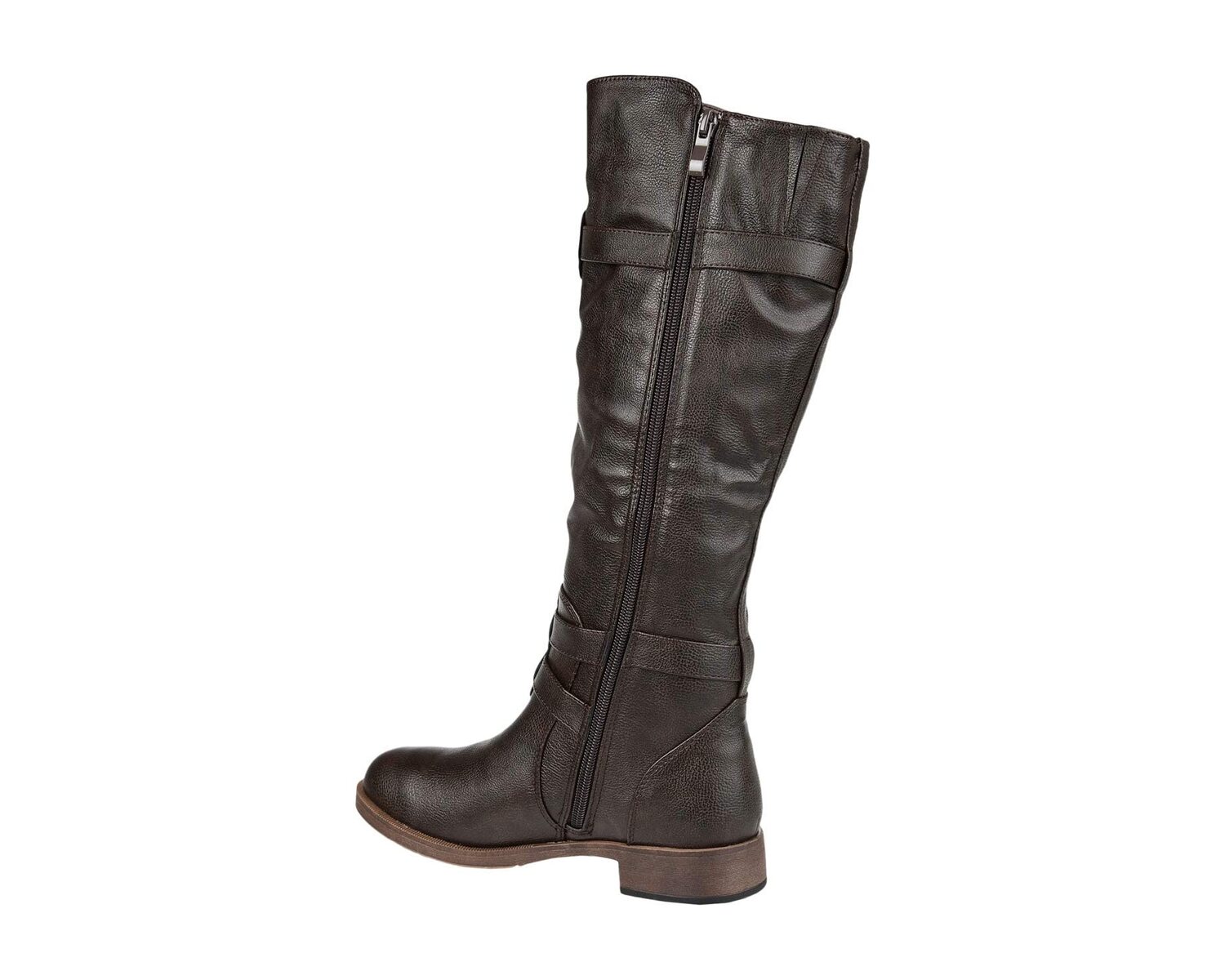 Эти стильные мотоботы от Journee Collection имеют верх из искусственной кожи премиум-класса, который поднимается ниже колен и подчеркивает тонкую простроченную деталь, а также изящные ремешки с пряжками на щиколотках и голенищах.