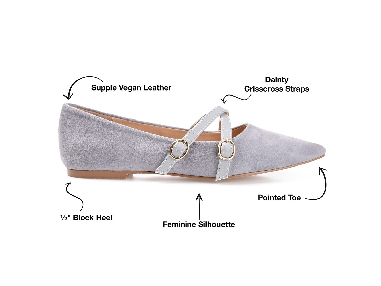 Квартира Patricia от Journee Collection придаст вам элегантный вид и непревзойденный комфорт. Эти туфли без шнуровки, украшенные перекрещивающимися ремешками с декоративными пряжками, дополнены элегантным заостренным носком и мягкой стелькой для мягкости и комфорта.