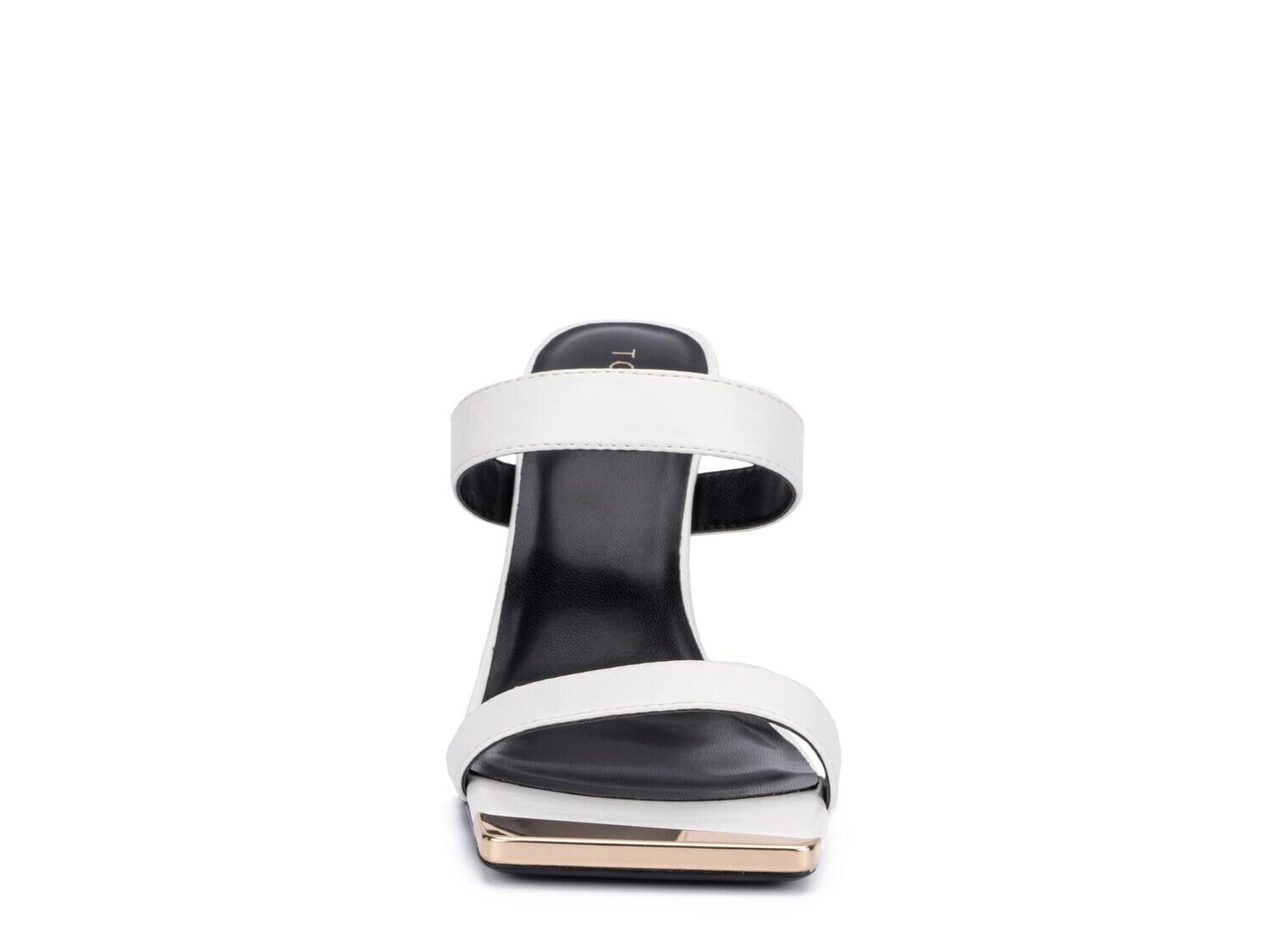 Создайте образ, требующий внимания, надев сандалии Antilles от Torgeis. Эти сандалии без шнуровки с двойной полосой в верхней части, квадратным открытым носком с металлическими акцентами и тонким каблуком идеально дополнят любой наряд.